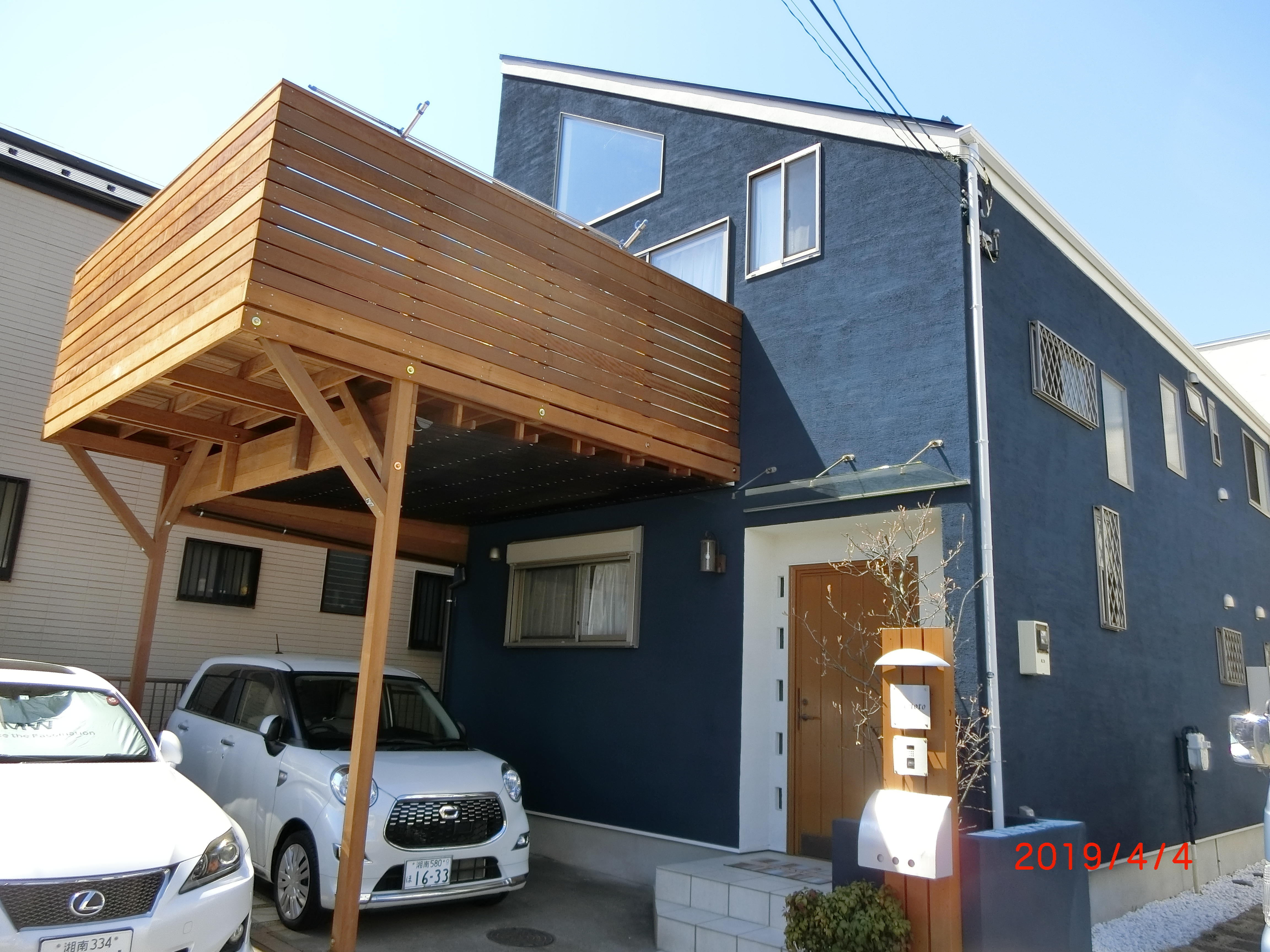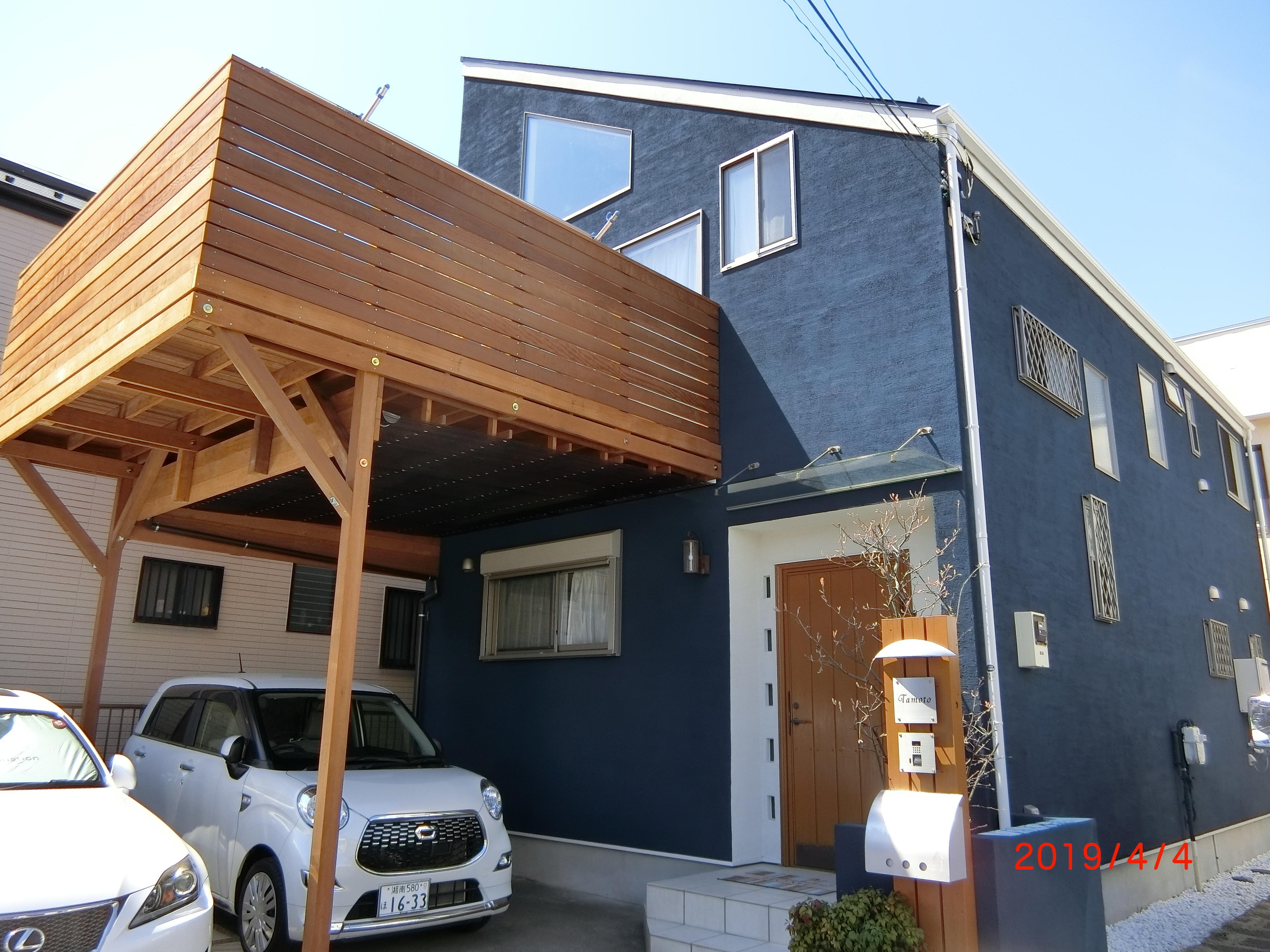 これまでの外壁色から気分一新し、きれいな紺色を選んでいただき、アクセントに白を使いました。