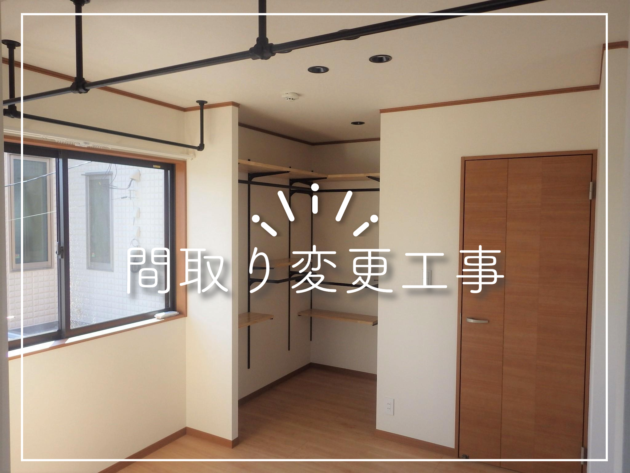 物置となってしまっている納戸を寝室とつなげて広くし、洋服を畳まずお店のように掛けて整理をしたいとのご希望でした。