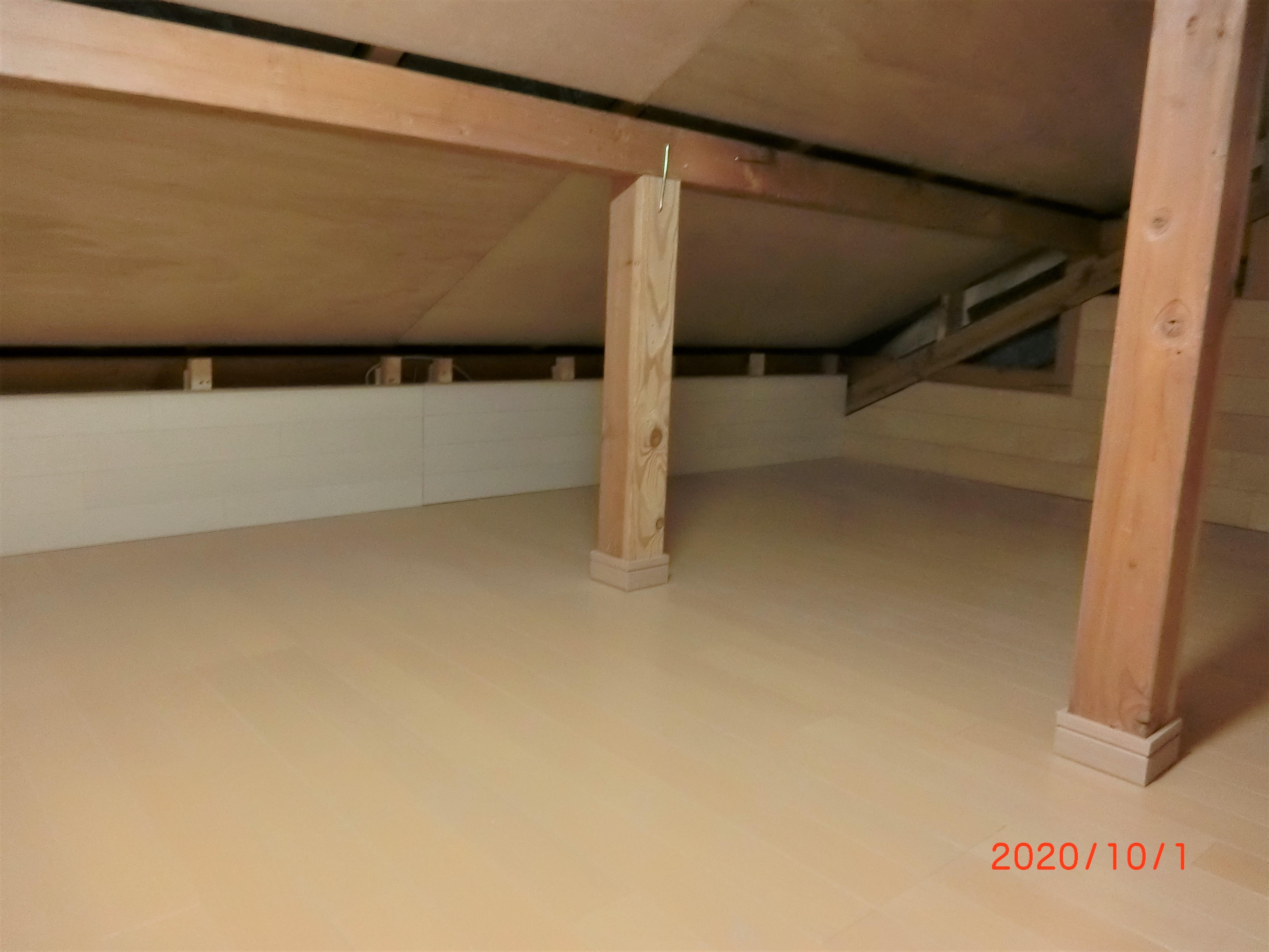 本来は塞がれている小屋裏ですが、大きな空間が広がっており、その空間を利用して、お部屋を狭くすることなく収納スペースを確保することが出来ました。
