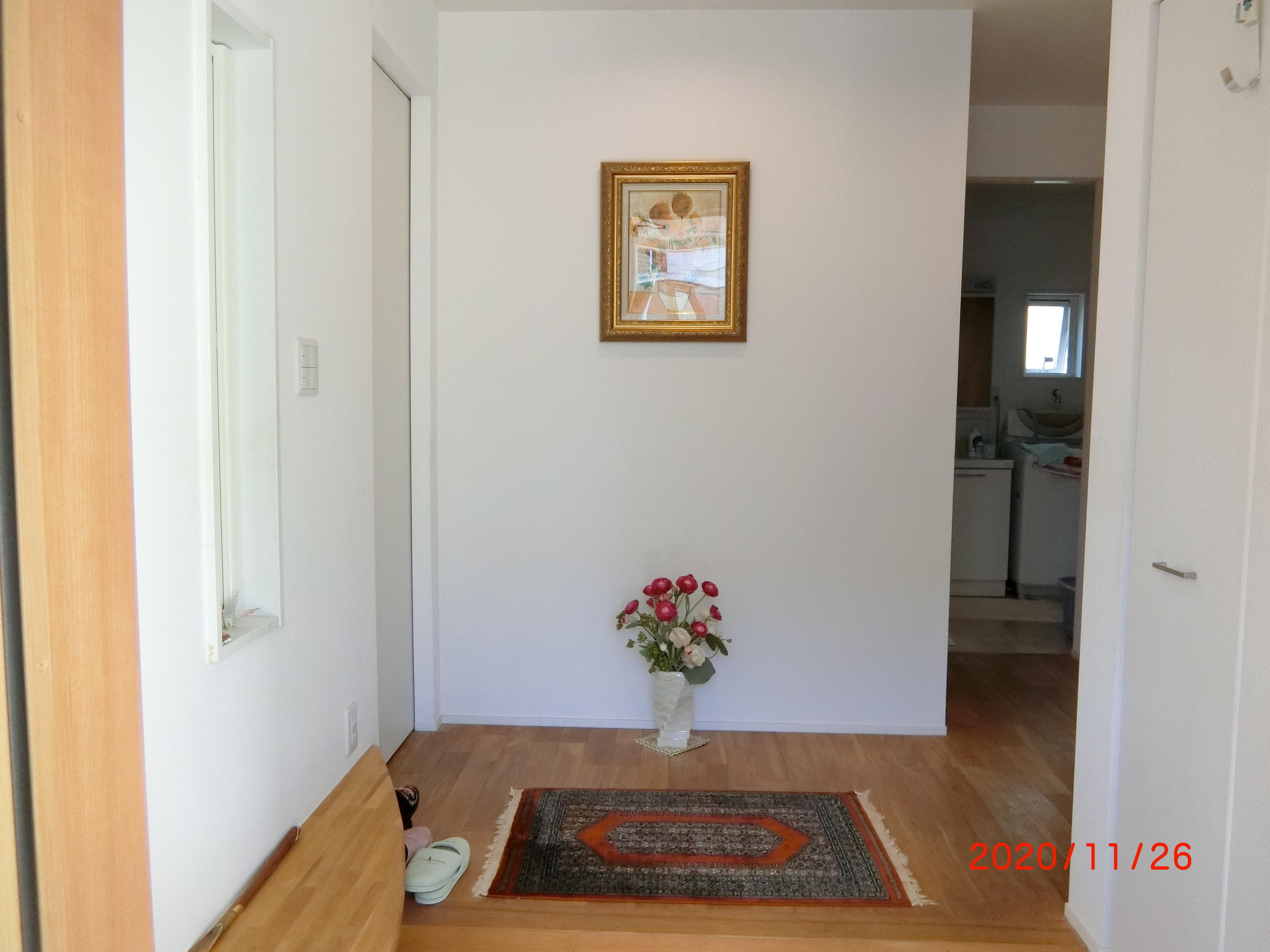 靴の脱ぎ履きの際に立ち座りを補助できるよう、玄関の両側に手すりを取り付けました。 しっかりと握ることができるので、安定した動作を行うことが出来ます。