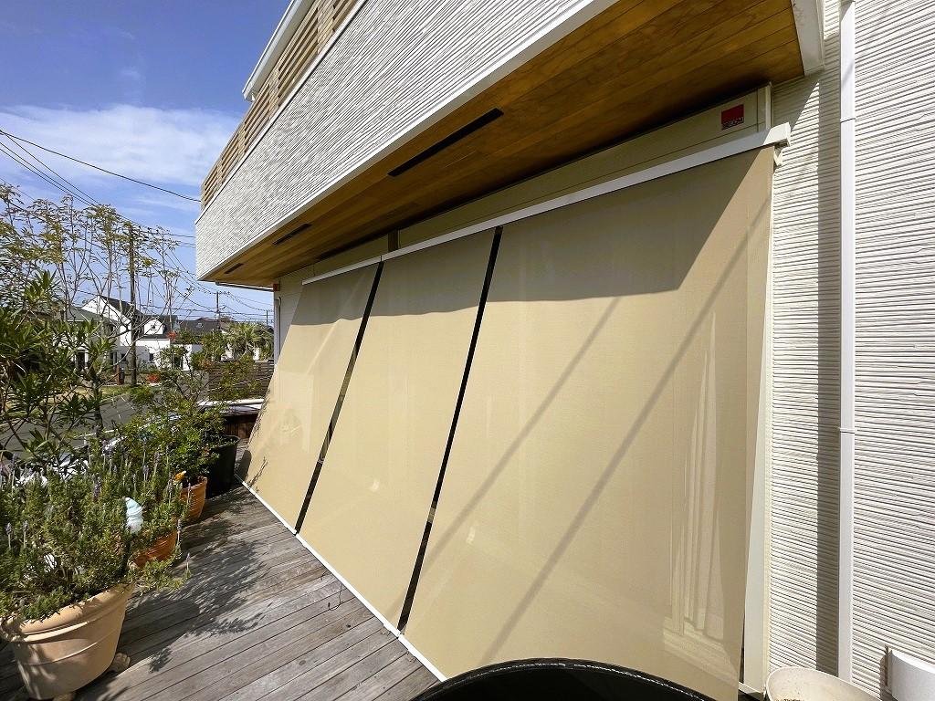 築年数は浅いですが西日が眩しく遮る方法はないかとご相談をいただき、スタイルシェードを設置しました。 夏の暑い日差しもカットしてエアコン効率UPも期待しています。
