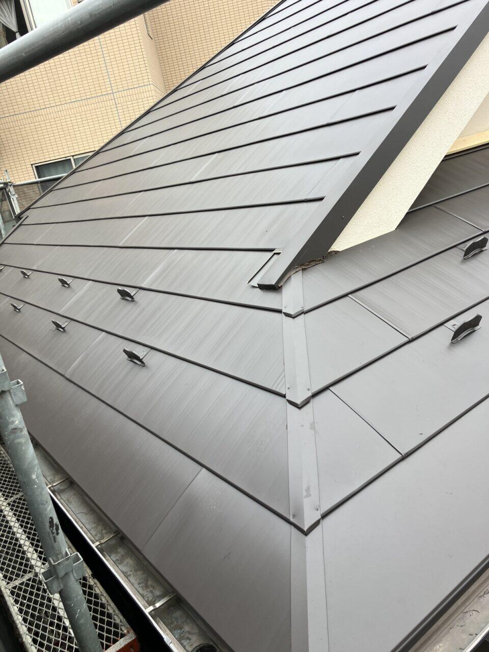 これまでの屋根の状態を改善するため、今回は高い耐久性を誇るガルバリウム鋼板に断熱材を一体化させた屋根材を採用いただきました。この「遮熱・断熱」のダブル効果により、これまで以上に室内の温度変化が抑えられ、厳しい夏の暑さを和らげる健やかな住環境を実現します。