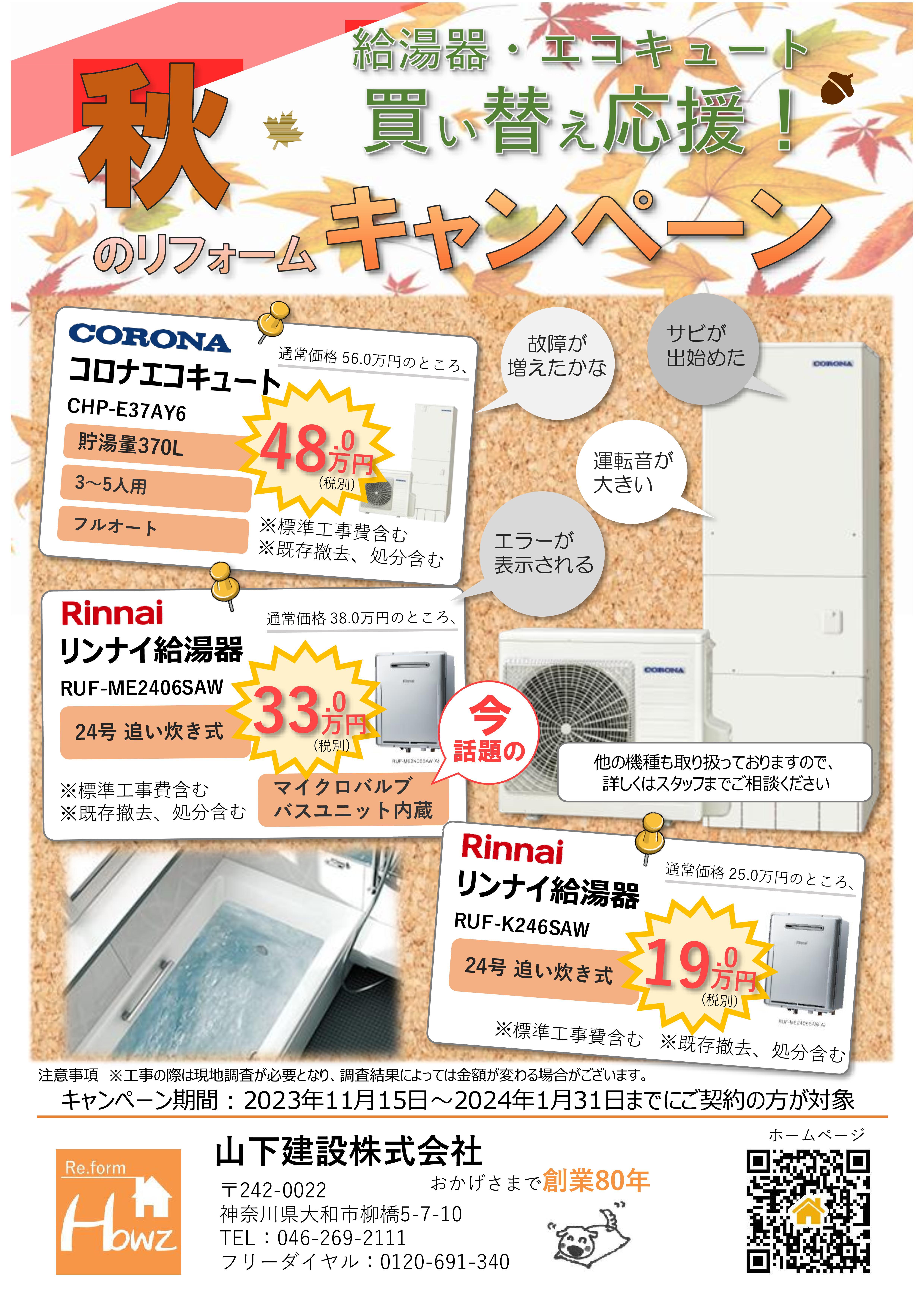 秋のリフォームキャンペーン チラシ (1.4 MB) 一覧へ戻る
