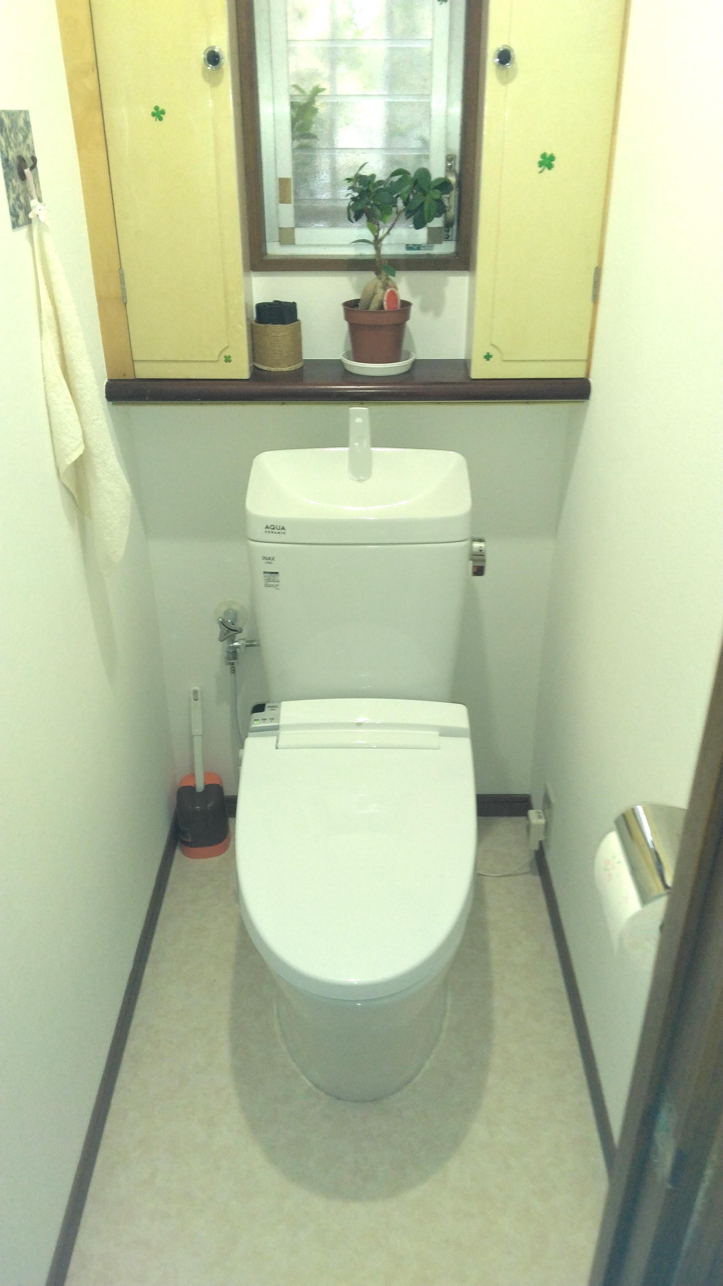トイレが古くなってきたということでご相談をいただきました。 クロスの剥がれなどがございましたので、一緒にクロスとクッションフロアの貼替もご提案しトイレの雰囲気が以前と変わり過ぎないように施工いたしました。