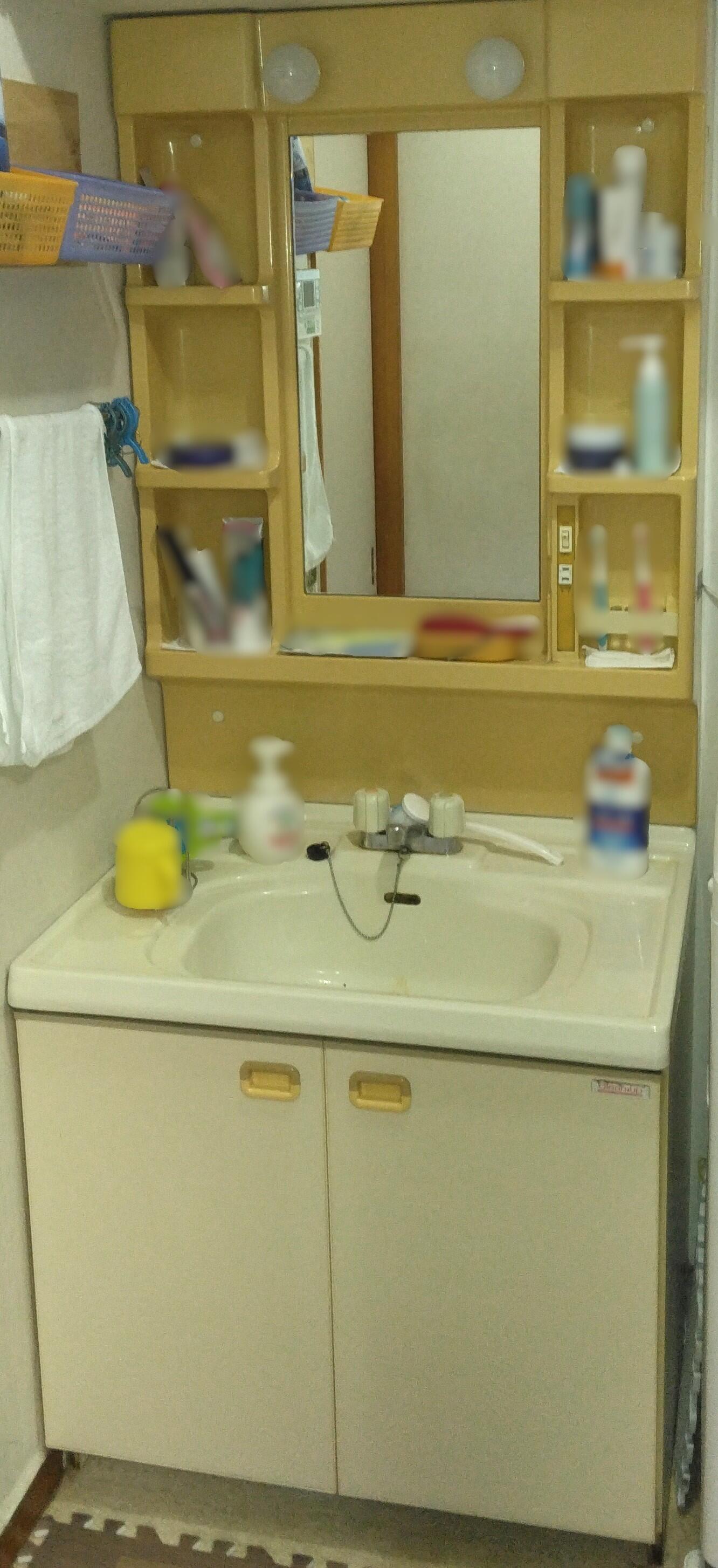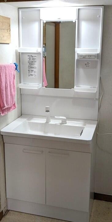 洗面化粧台が古くなってきたとのことで取替のご依頼をいただきました。