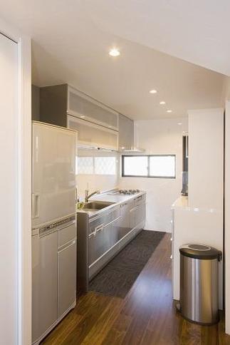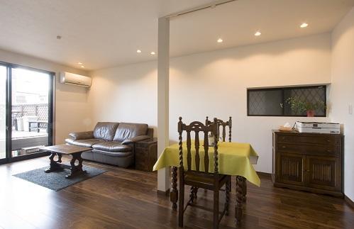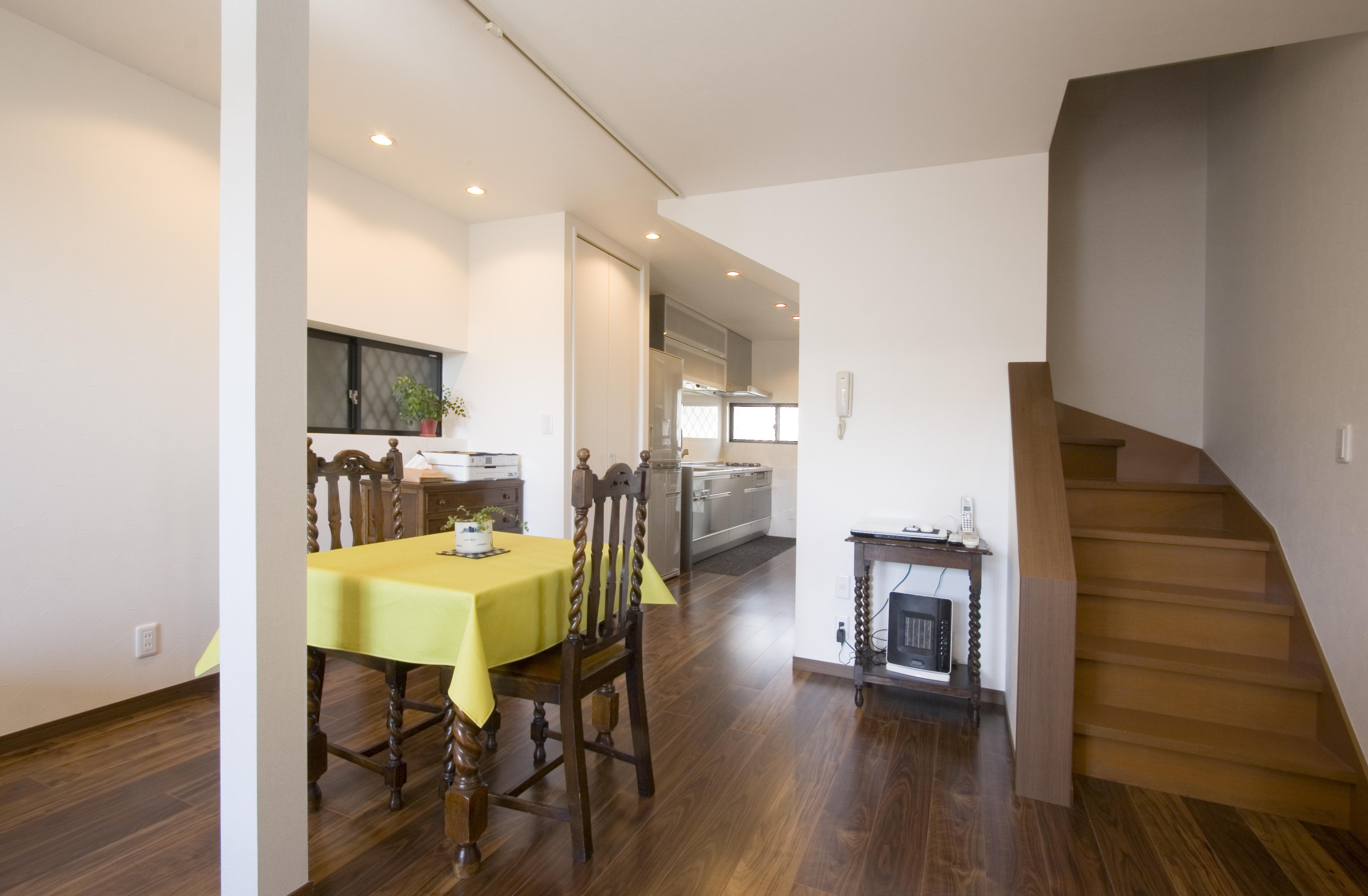 和室、キッチン、リビングと続く間取りで、和室への動線が悪く、活用できていなかった施主様。そこで和室スペースに浴室と洗面室を移動し、キッチンも奥へと位置を変え、それぞれの空間がゆったり、伸びやかになるようリフォームしました。ダイニングやキッチンも明るく広くなりました。