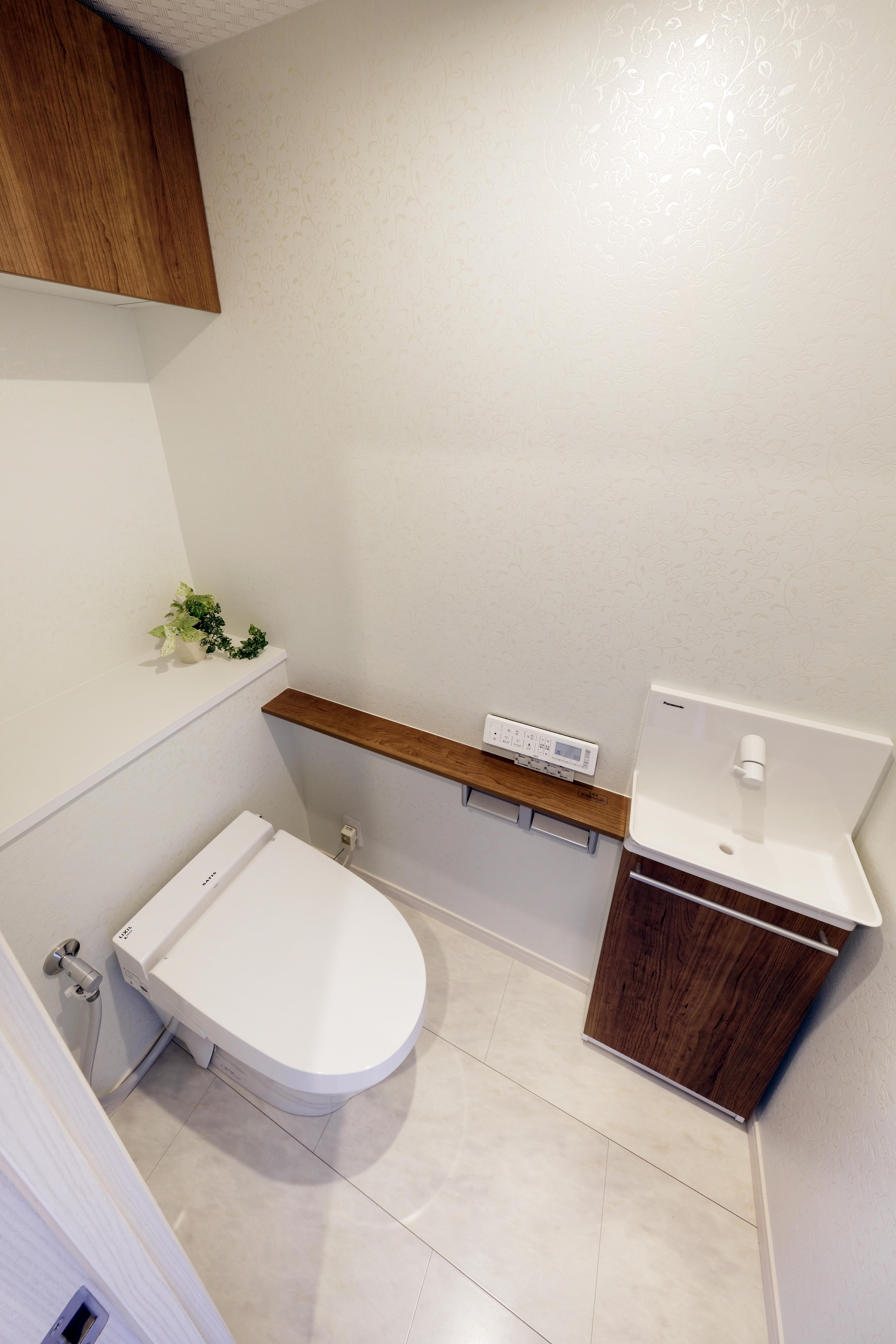 タンクレストイレを設置し、手洗いやカウンターも設けました。以前とほぼ同じ広さだが、ゆとりのあるお洒落なスペースに生まれ変わりました。