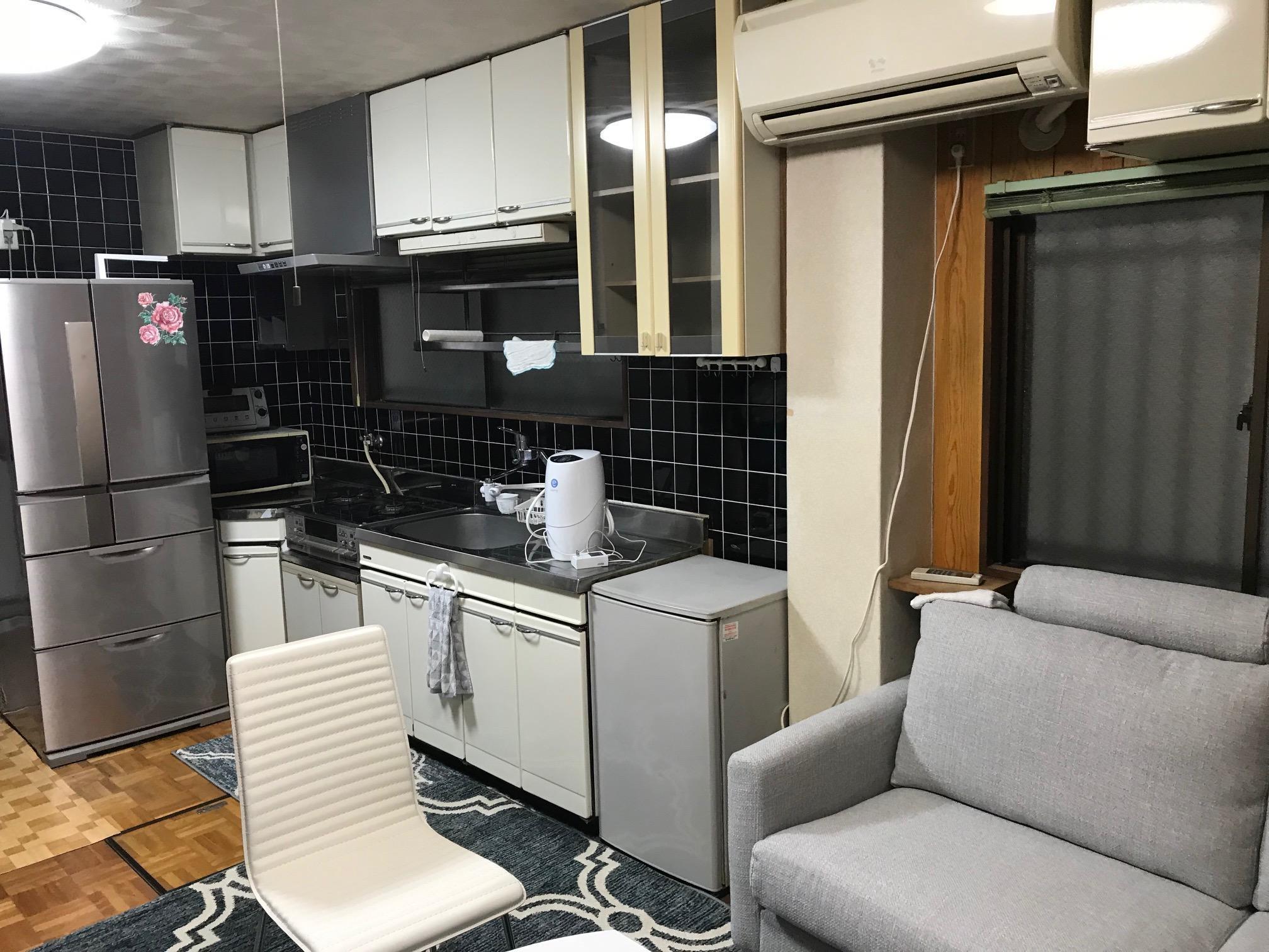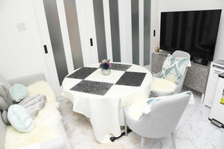 掘りごたつのついた床を改修してマーブル調のフロアタイルに張替え。天井・壁のクロスを張替えてお部屋全体を明るく演出。ダウンライトを設置し、食事やTV鑑賞といったシーンに合わせて明るさを調節できるようにしました。