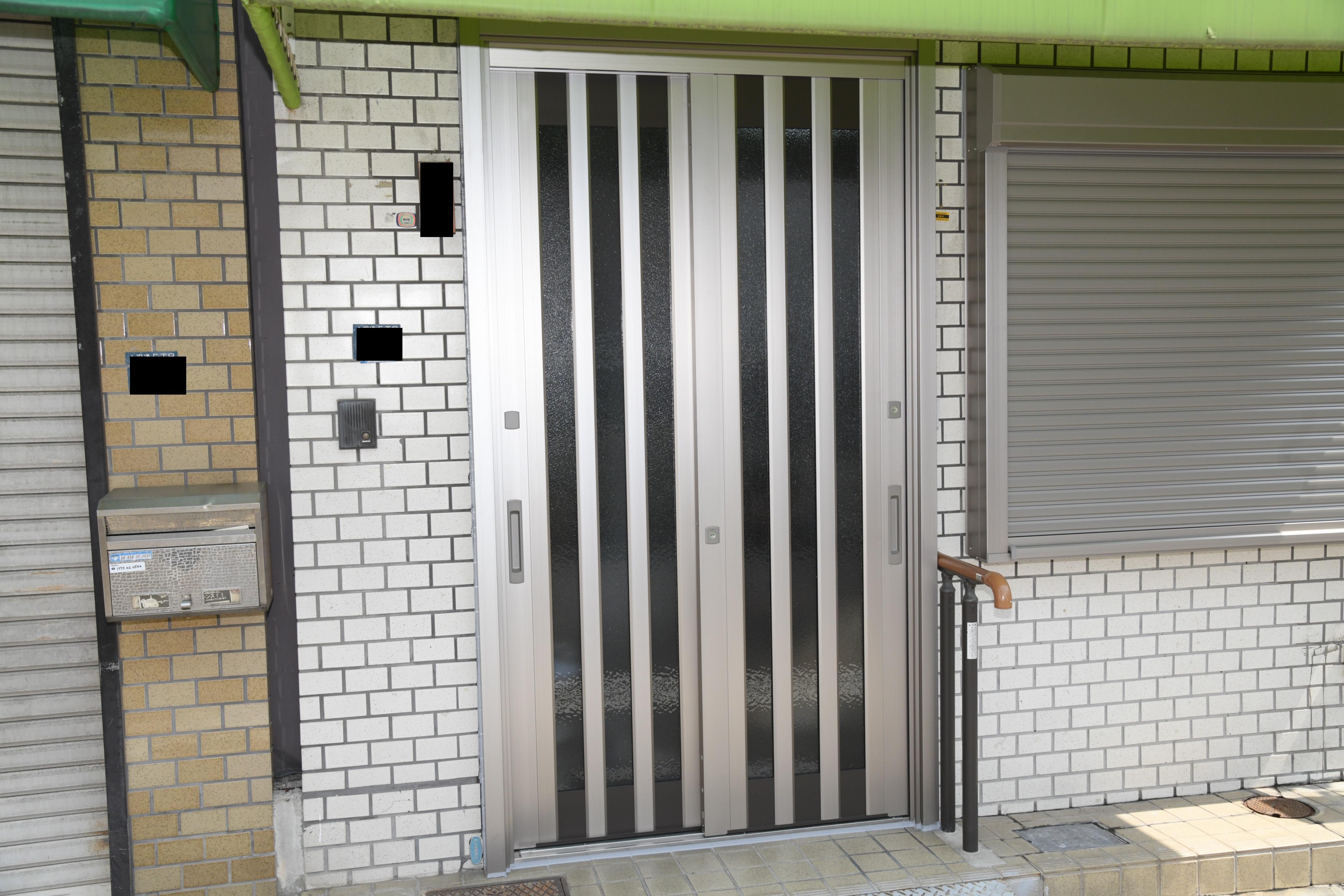 LIXIL リシェント玄関引戸 及びリフォームシャッターを採用夏の暑さや冬の冷え込みを軽減し、快適に過ごしていただくようご提案させていただきました。