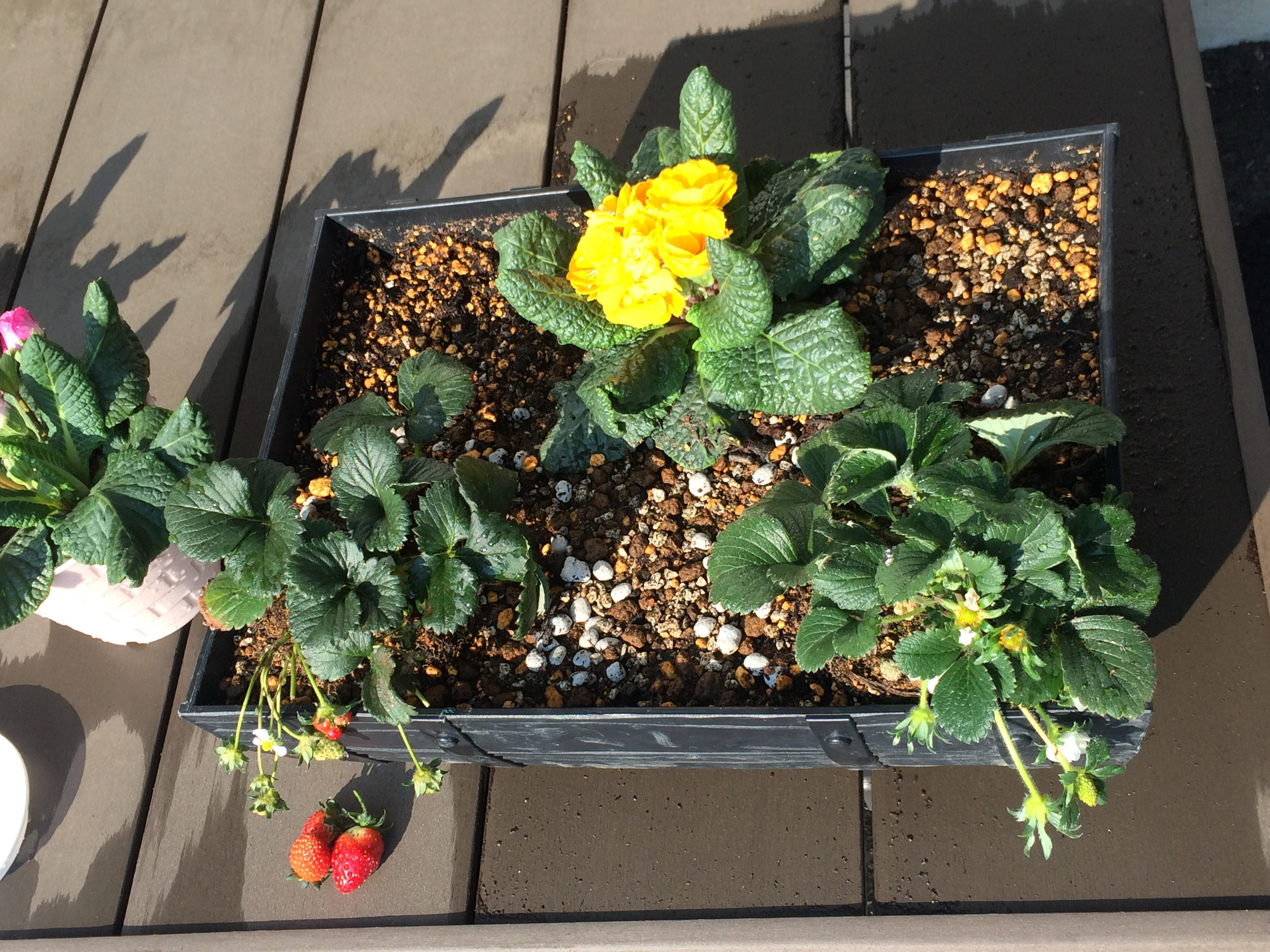 3月24日に開催する寄せ植え教室に先駆けて、リフォームショップでイチゴを使った寄せ植えをやってみました!