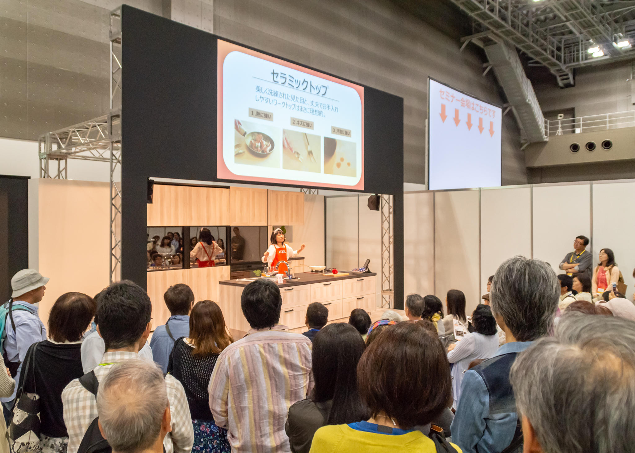 ビッグサイトではたくさんのLIXIL商品が展示され、それぞれのコーナーの担当スタッフが熱心に商品の説明をしていました。