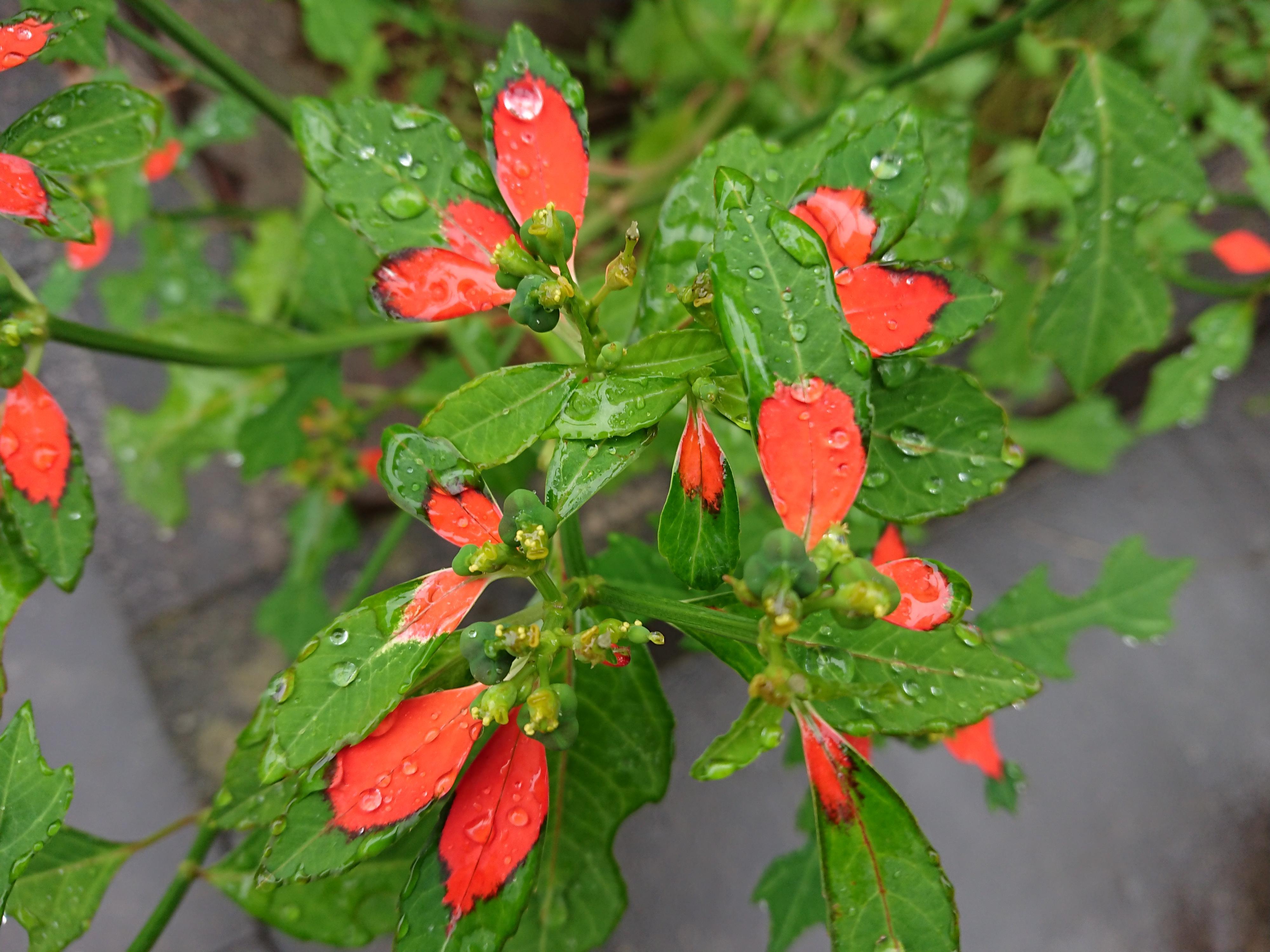 ブラジル原産、クリスマスシーズンに鉢植えでよく見かけるポインセチアの仲間で、夏~秋に鑑賞できる一年草
