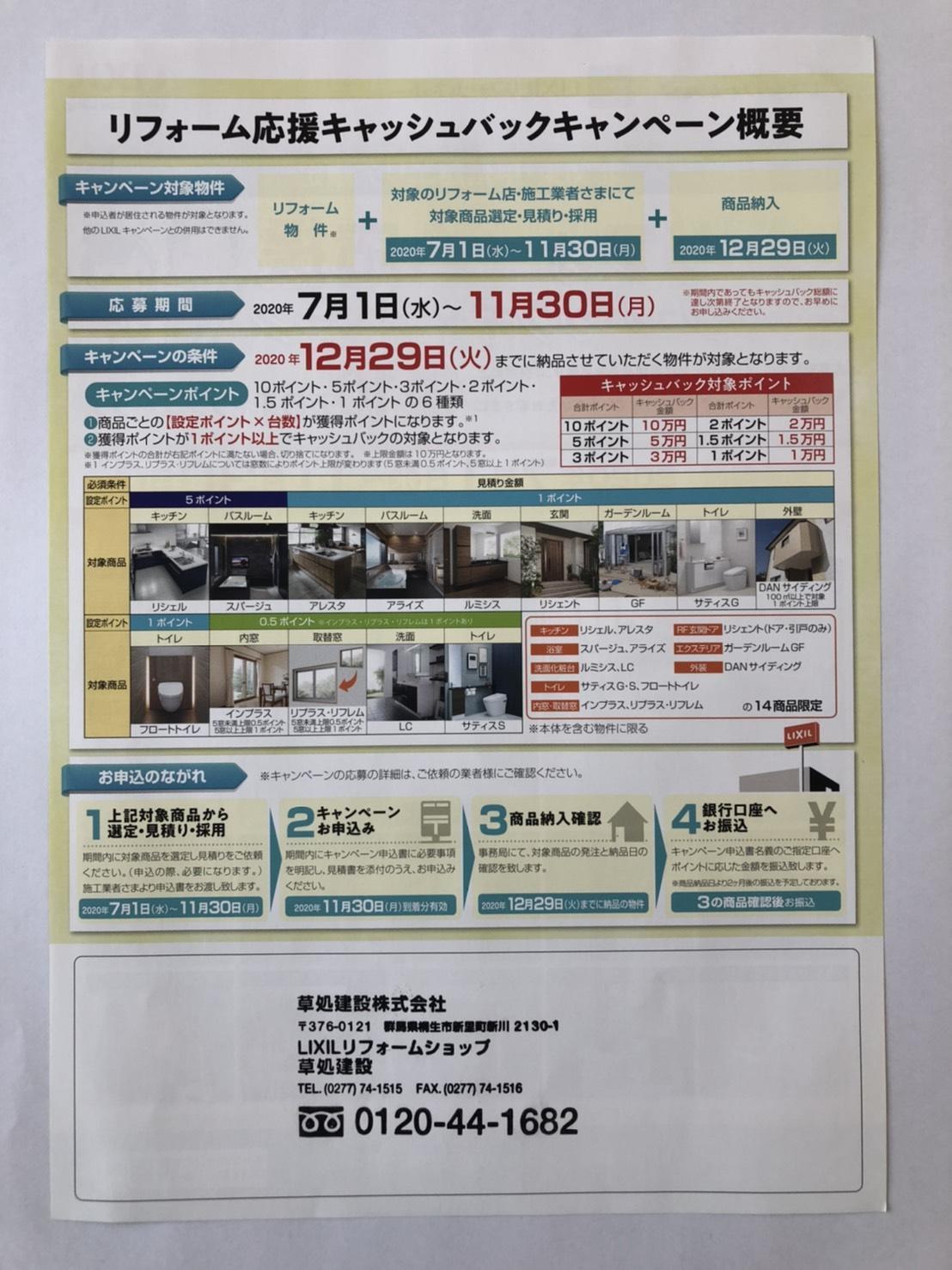 12月29日までに商品搬入されると、最大10万円キャッシュバックいたします。今リフォームをお考えの方、どうぞご検討下さい。