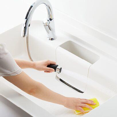 「調理中に汚れた手で水栓に触りたくない」や「シンクってはじの方の汚れが落としにくい」と