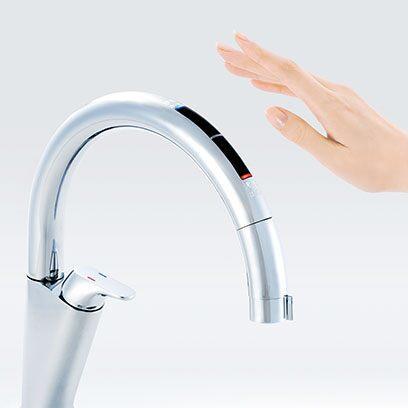 汚れた手で触ることなく、手や物でかざすと自動で水が出て便利。