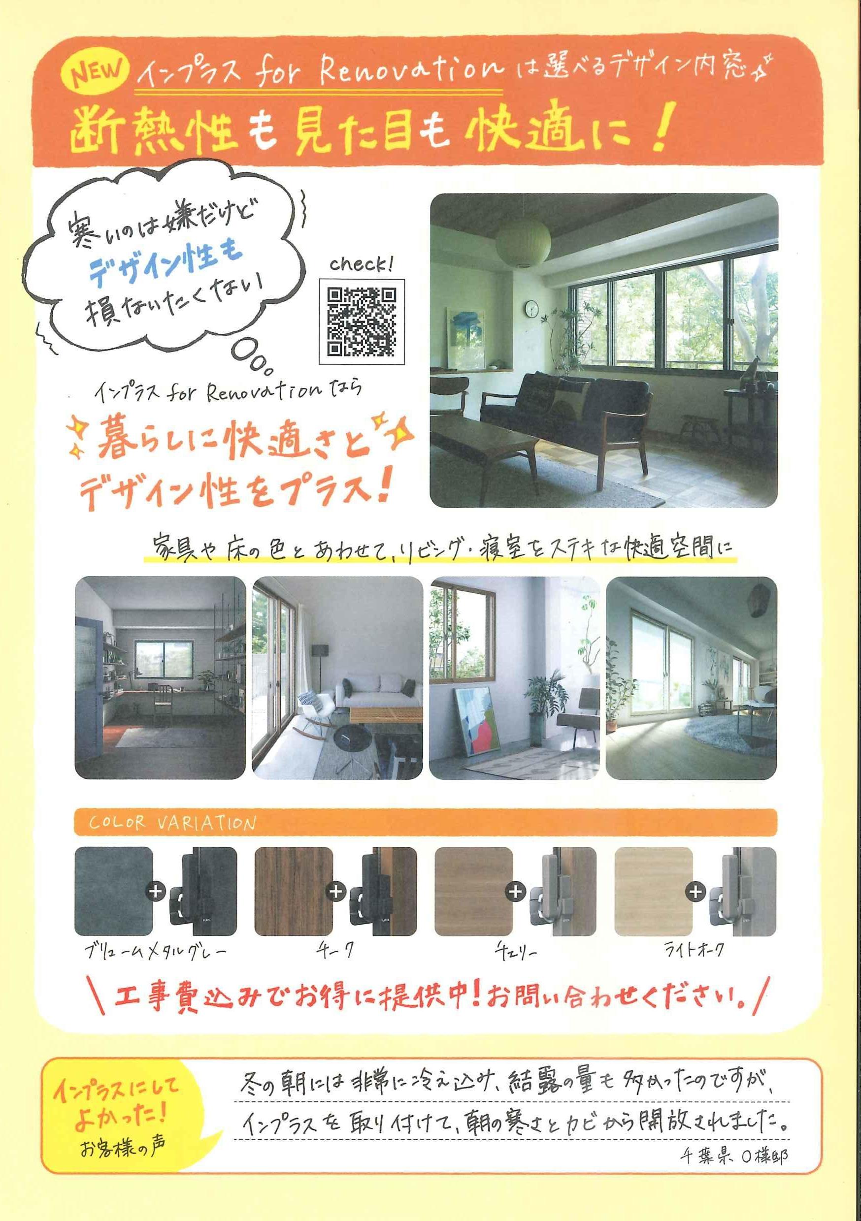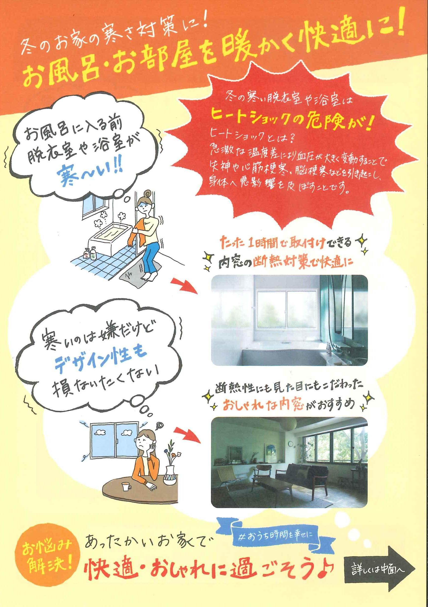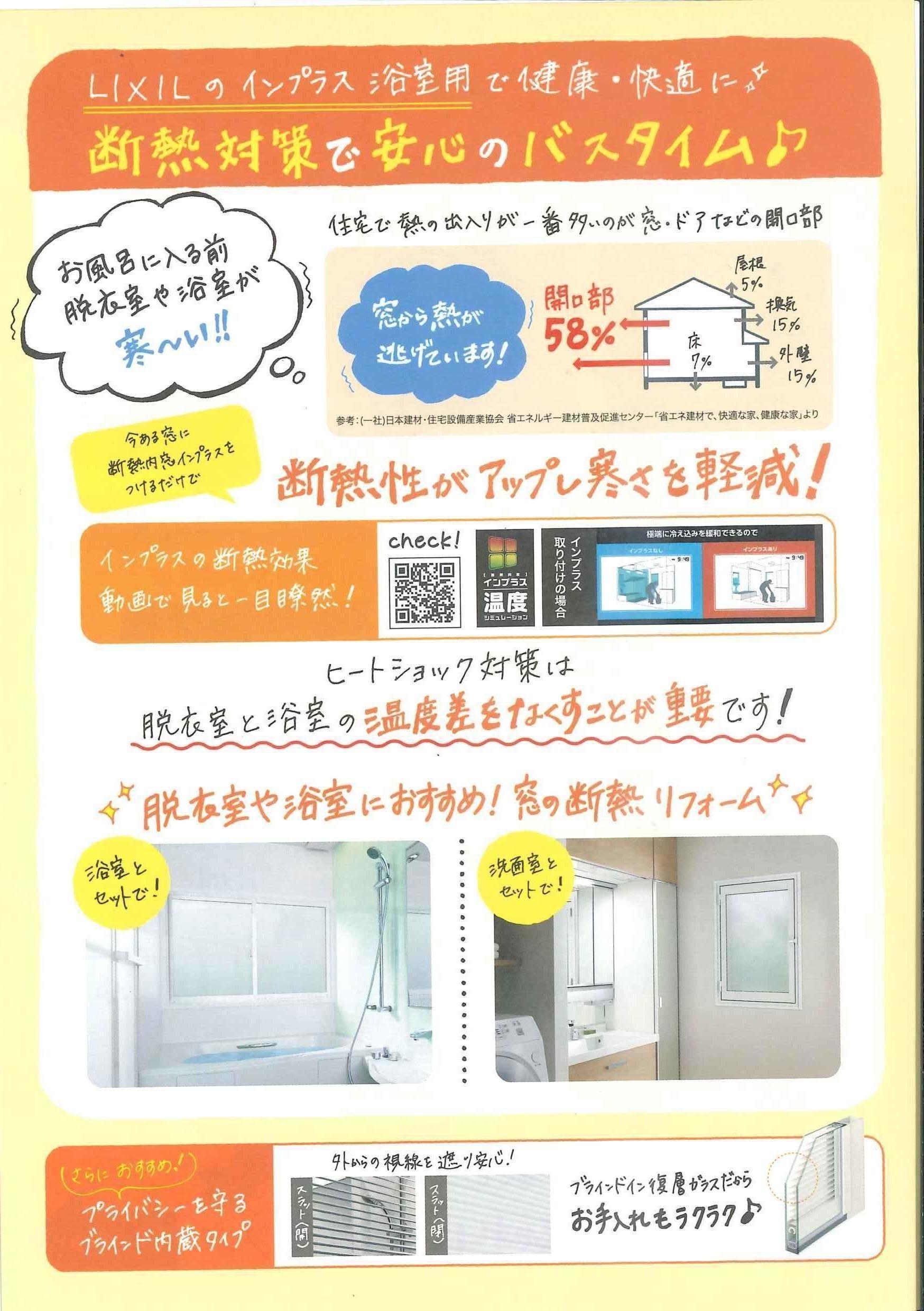 冬の寒さに悩まされているリビングや浴室、トイレなど『インプラス』を取り付ける事により快適空間になります。