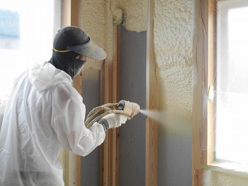木造住宅の断熱材は、壁にはグラスウールが一般的ですが年数がたつと湿気を吸ってだんだん下がってしまいます。そして断熱機能が低下してしまいます。そこで、断熱材の入れ替えをすることが効果的です。グラスウールから『現場発泡ウレタン吹付』に変えてはいかがでしょうか。専用ガンで柱と柱の間に吹き付けます。現場で吹き付けるのでどんな形でも可能で、継ぎ目がないので気密性が高く熱を逃しません。グラスウールは湿気を吸いカビが発生しやすいですが、この方法は湿気を防ぎカビを発生させません。