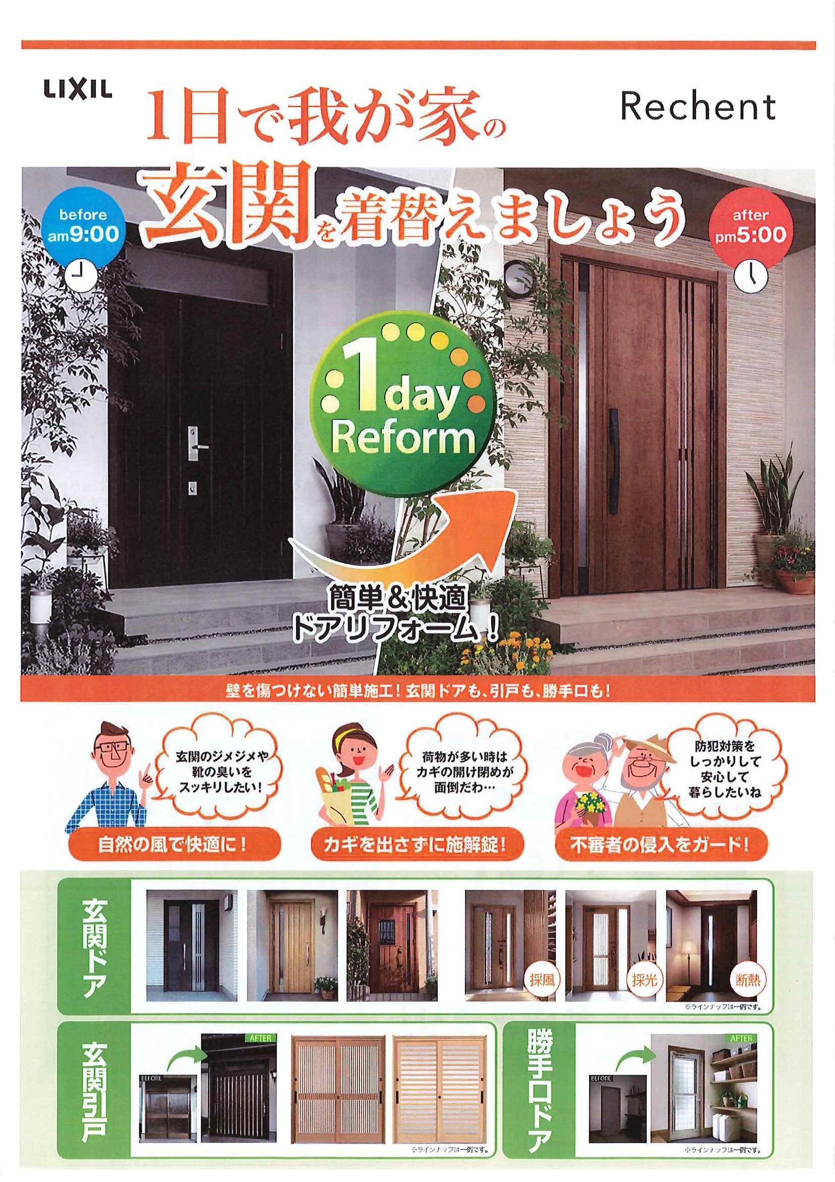 こんにちは住まいメイトの井上です。リフォーム用玄関ドア『リシェント』のご紹介です。