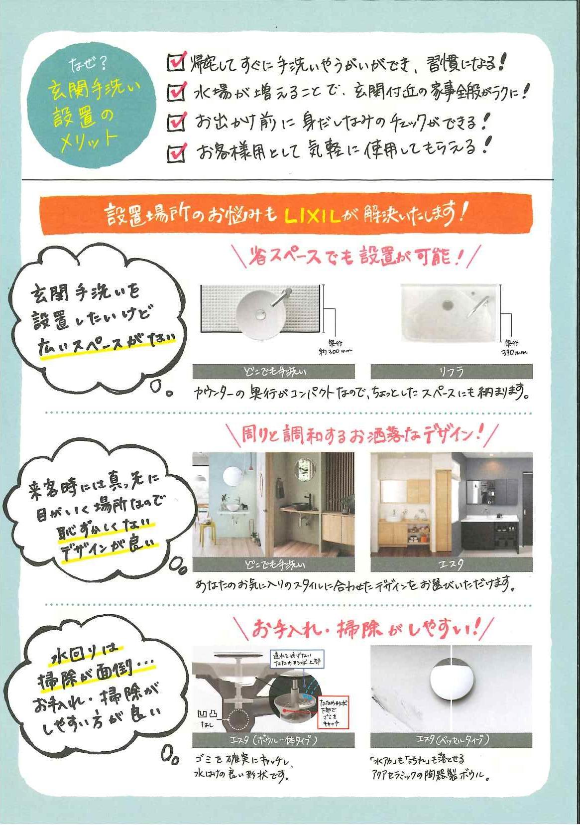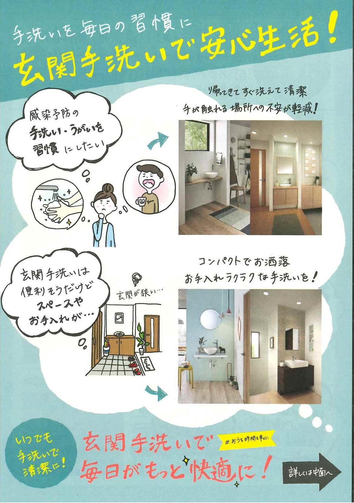 一覧へ戻るこんにちは住まいメイトの井上です。新型コロナウイルスとインフルエンザウイルスの同時流行が近づいているようですね。感染予防の手洗い・うがいを習慣にしている方は多いかと思います。私も帰宅時はしていますが、玄関と洗面所が離れているので、玄関に洗面台があったら便利で衛生的だなと思います。