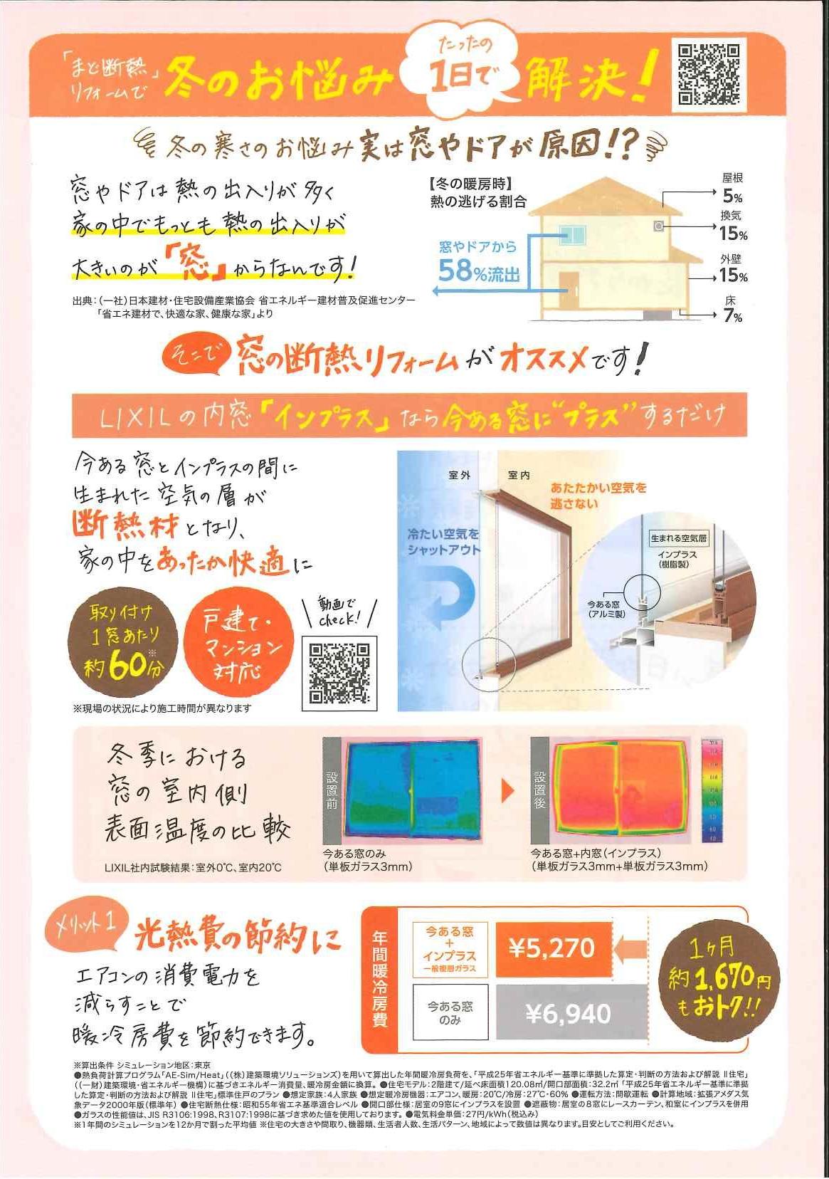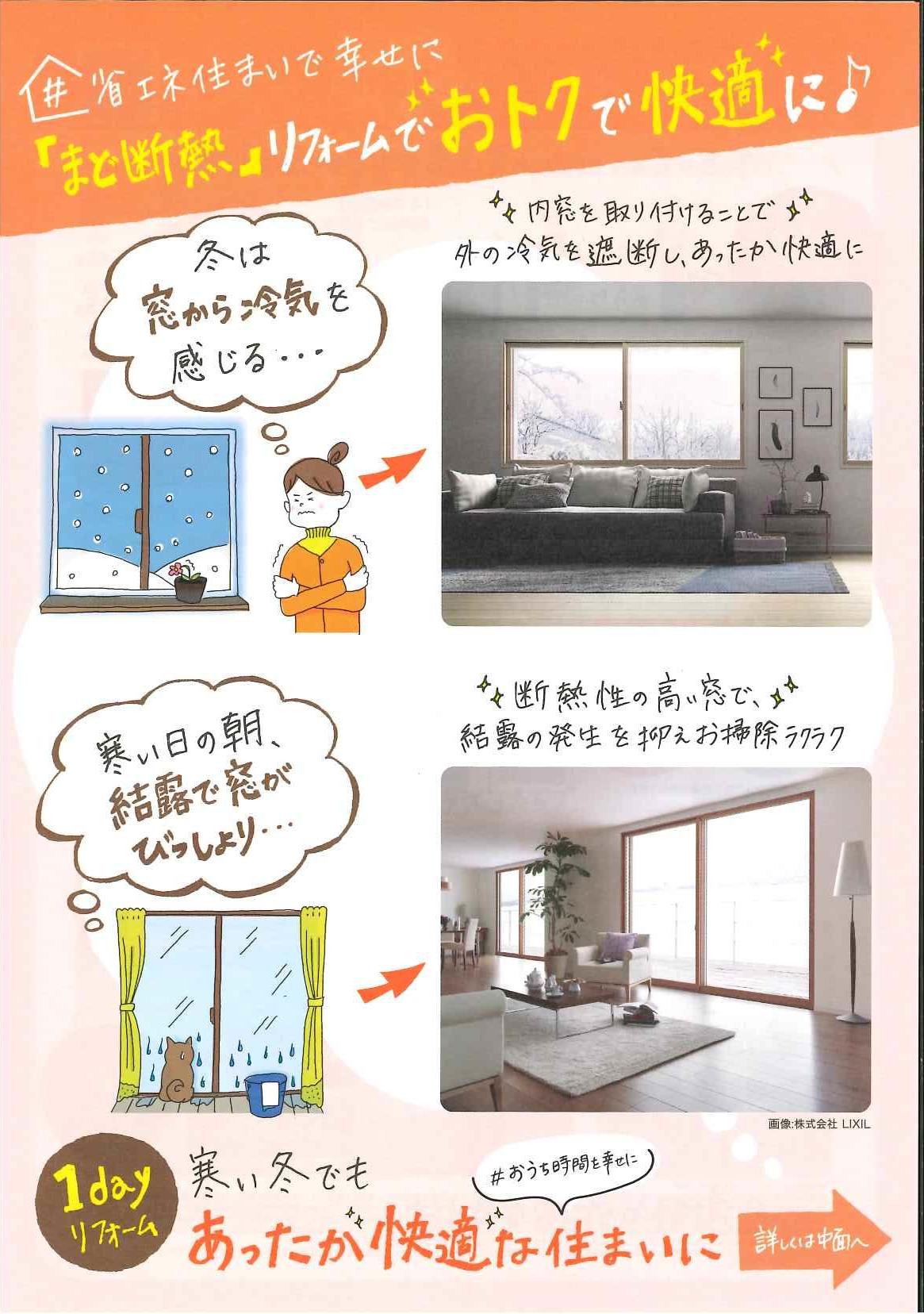 光熱費の節約にもなる『まど断熱』リフォームがおすすめです。