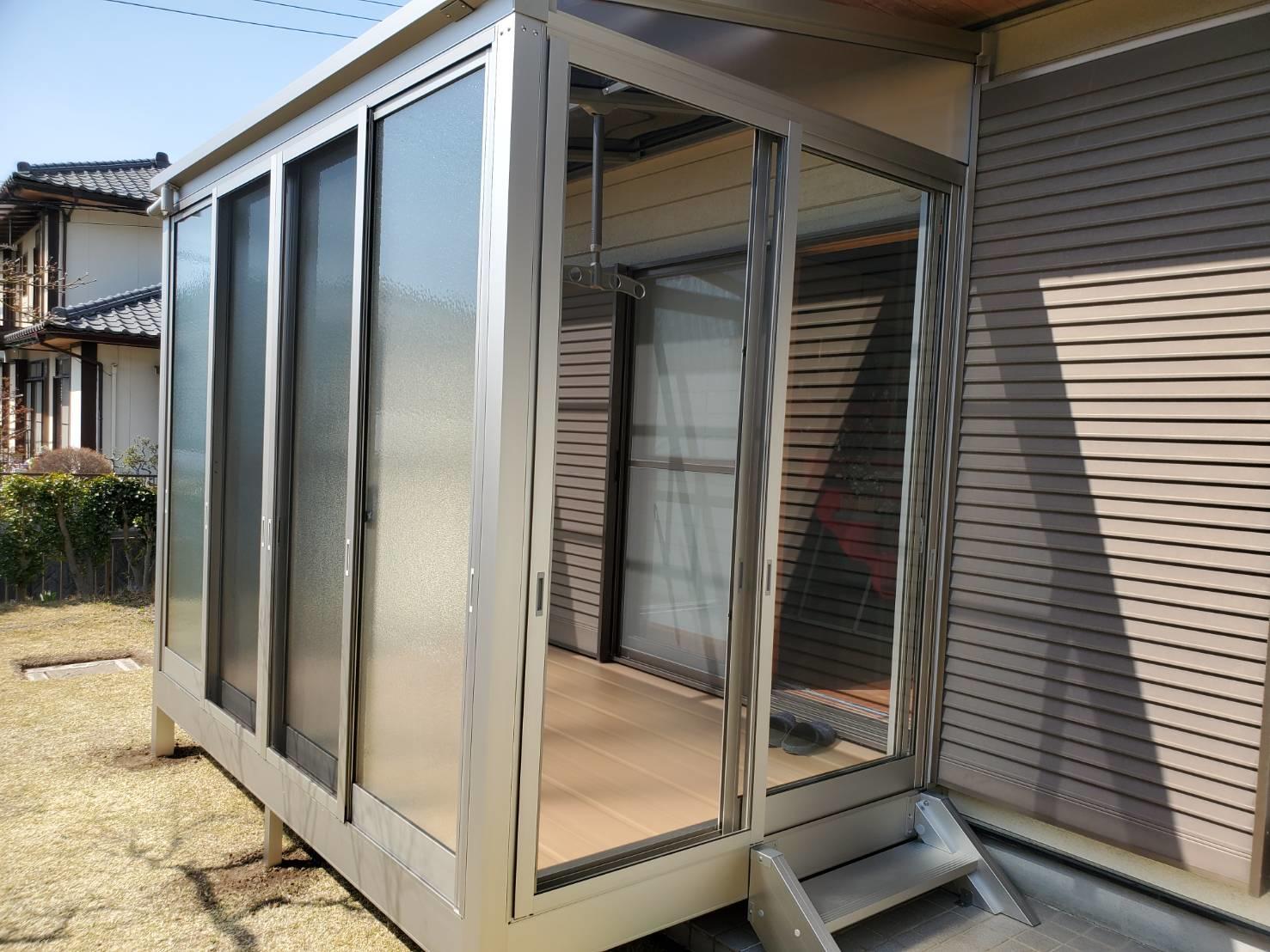 奥様のご希望で洗濯室を造りました。洗濯物を外干ししたまま安心して外出できます。