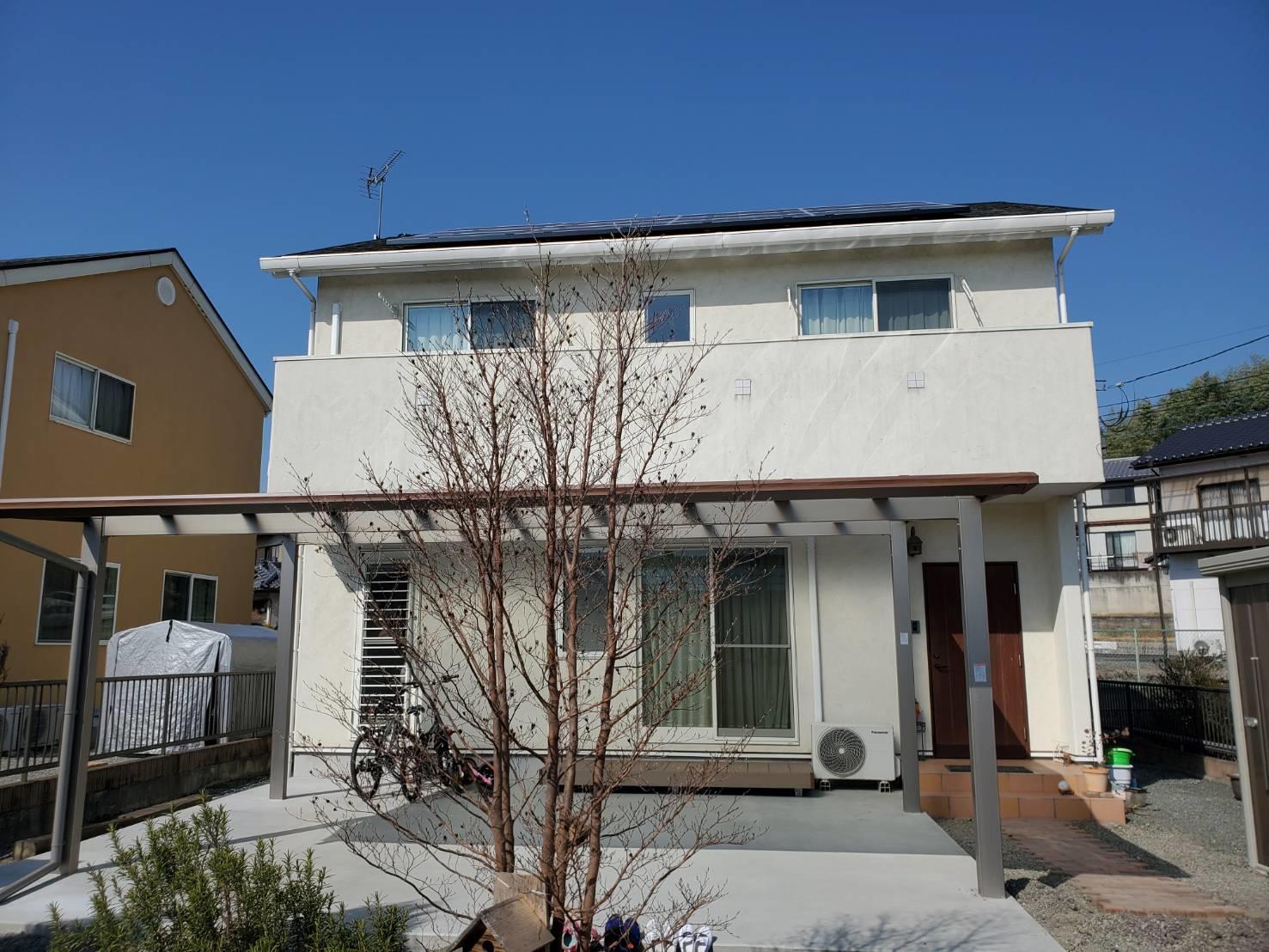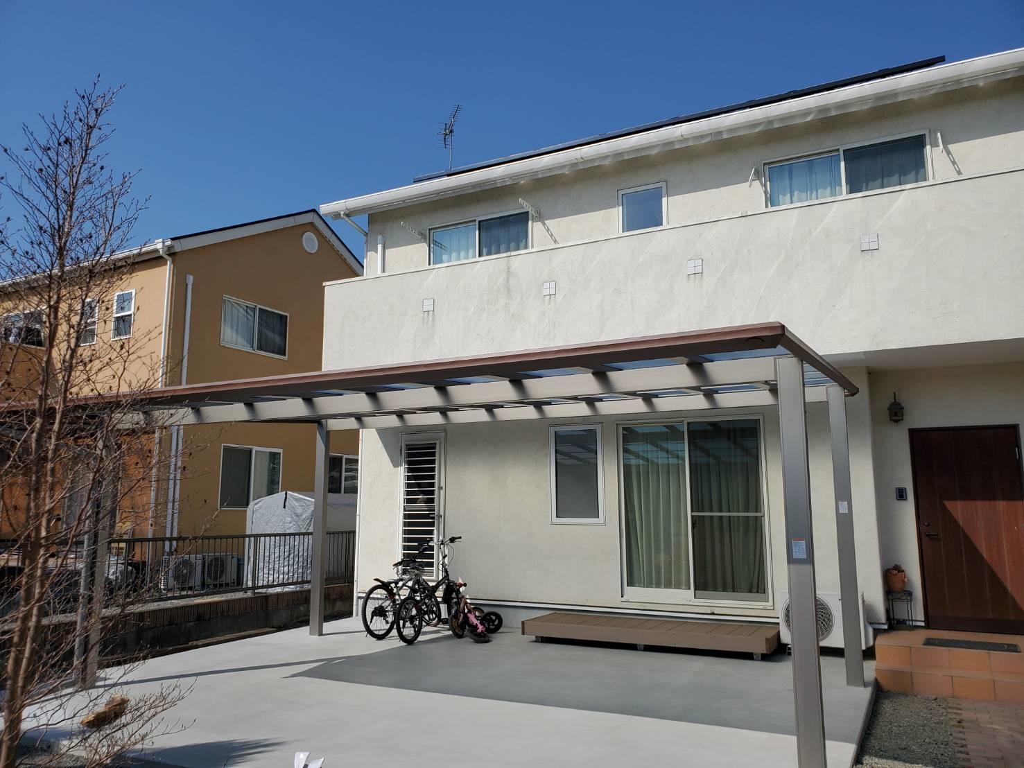 また土間はコンクリートにして、カーポートの『フーゴ』も設置しました。高い強度を持ち、美しさや使いやすさを追求した商品です。屋根枠の部分を木調色にし、ウッドデッキの色に合わせる事によりスッキリとまとまりました。