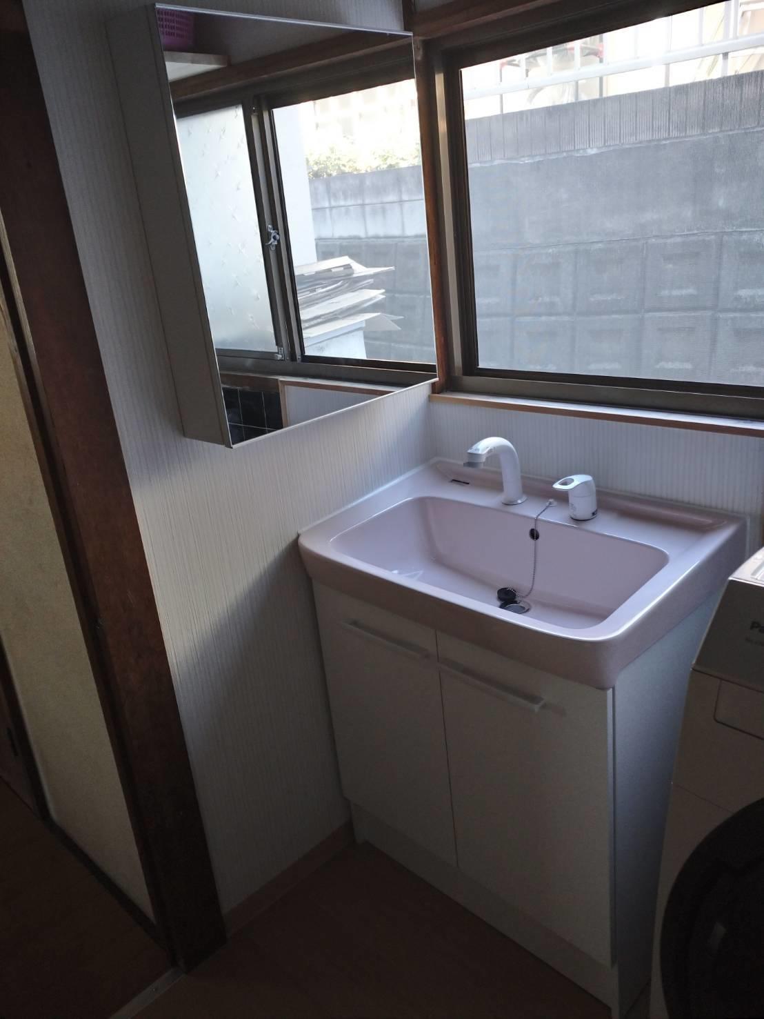 限られた面積の洗面室に、コンパクトな「オクト」を採用しました。オクトは節水出来たり、お手入れ簡単でリーズナブルです。