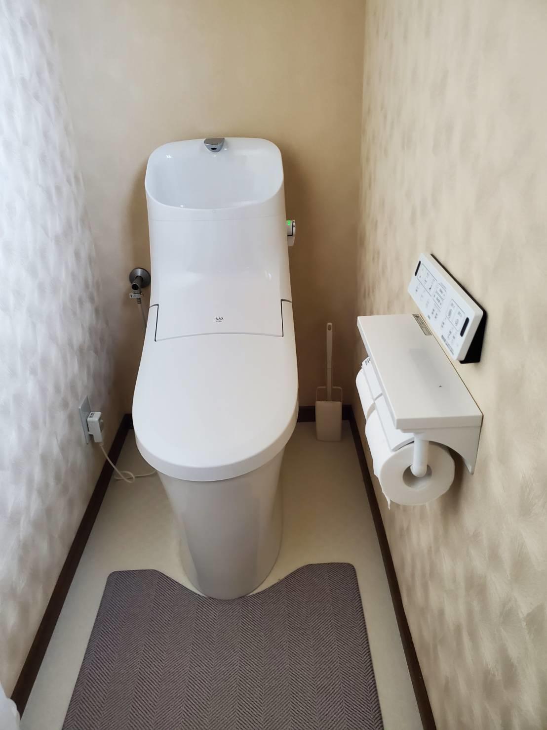 新築当時のトイレからLIXILトイレのアメージュに入れ替え、クロスと床も張り替えました。 アメージュはお掃除ラクラクや、フチレス形状、節水など快適機能を搭載したシャワートイレ一体型のスタンダードモデル。 手洗付きは、洗いやすさを考えた広くて深い手洗い鉢です。