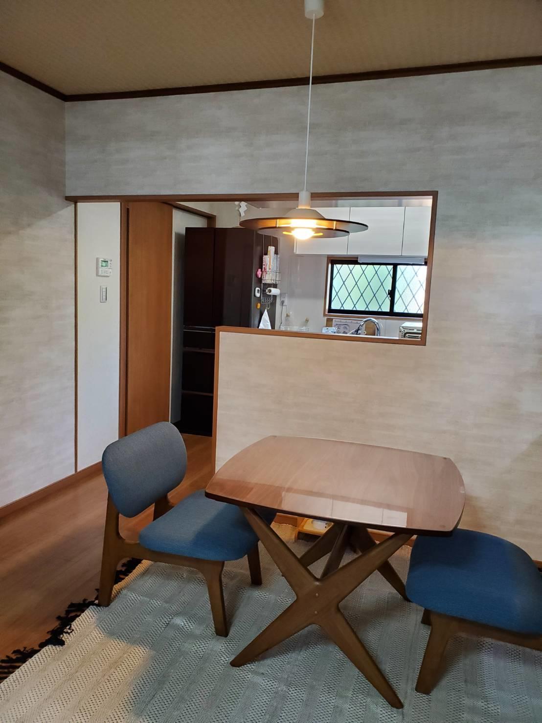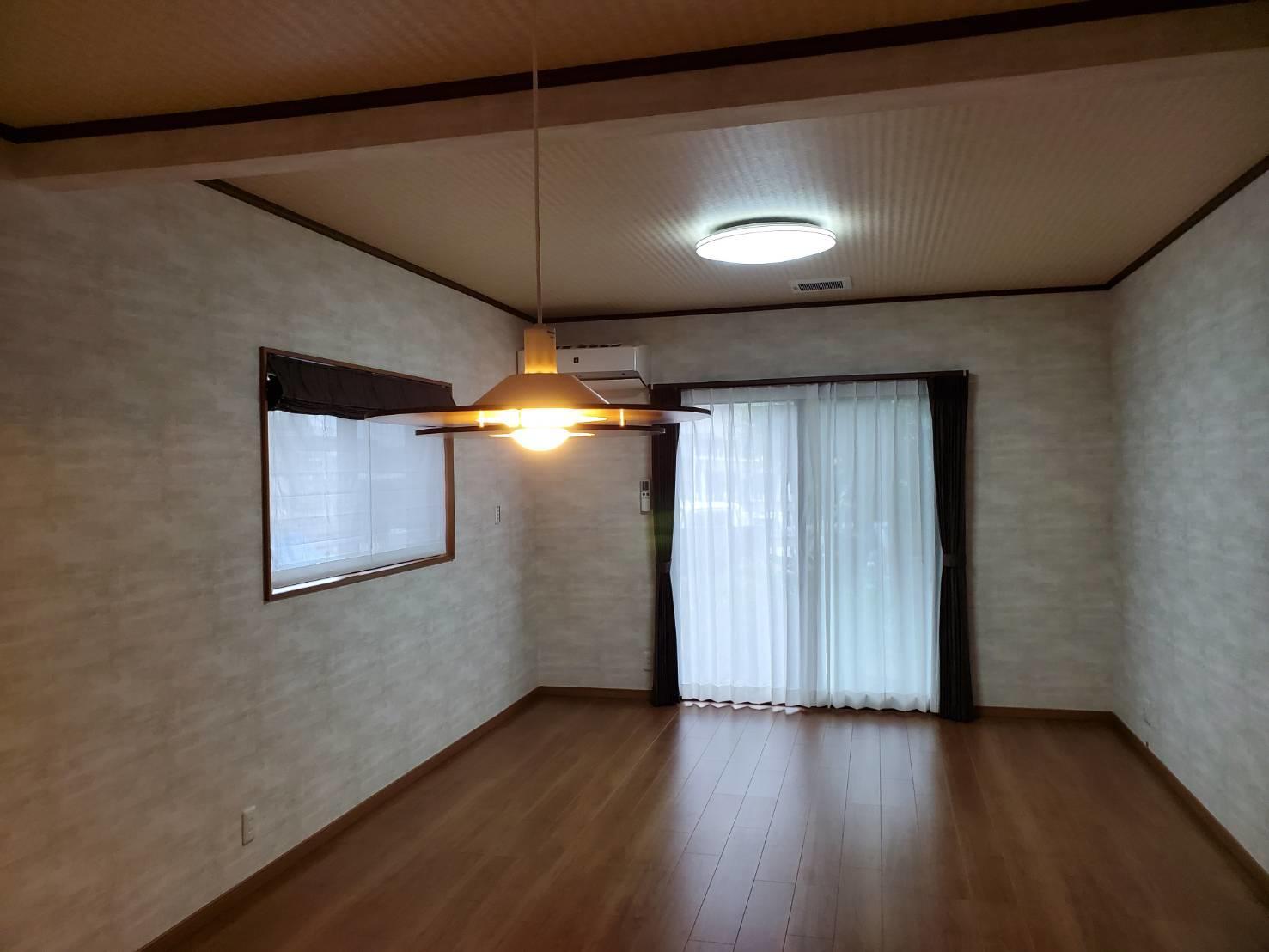 床は、既存床にLIXILのラシッサフロアを重ね張りしました。ワックスが必要ないノンワックスタイプなのでお手入れ簡単で、足ざわりのよさが魅力の床材です。また、重ね張りにすると工期が短縮されます。 天井はアジアンテイストのクロスを、壁は天井に合う織物調のクロスを貼りました。 床・壁・天井とカーテンや照明器具の色や質感を揃えたので、統一感のあるリビングになりました。