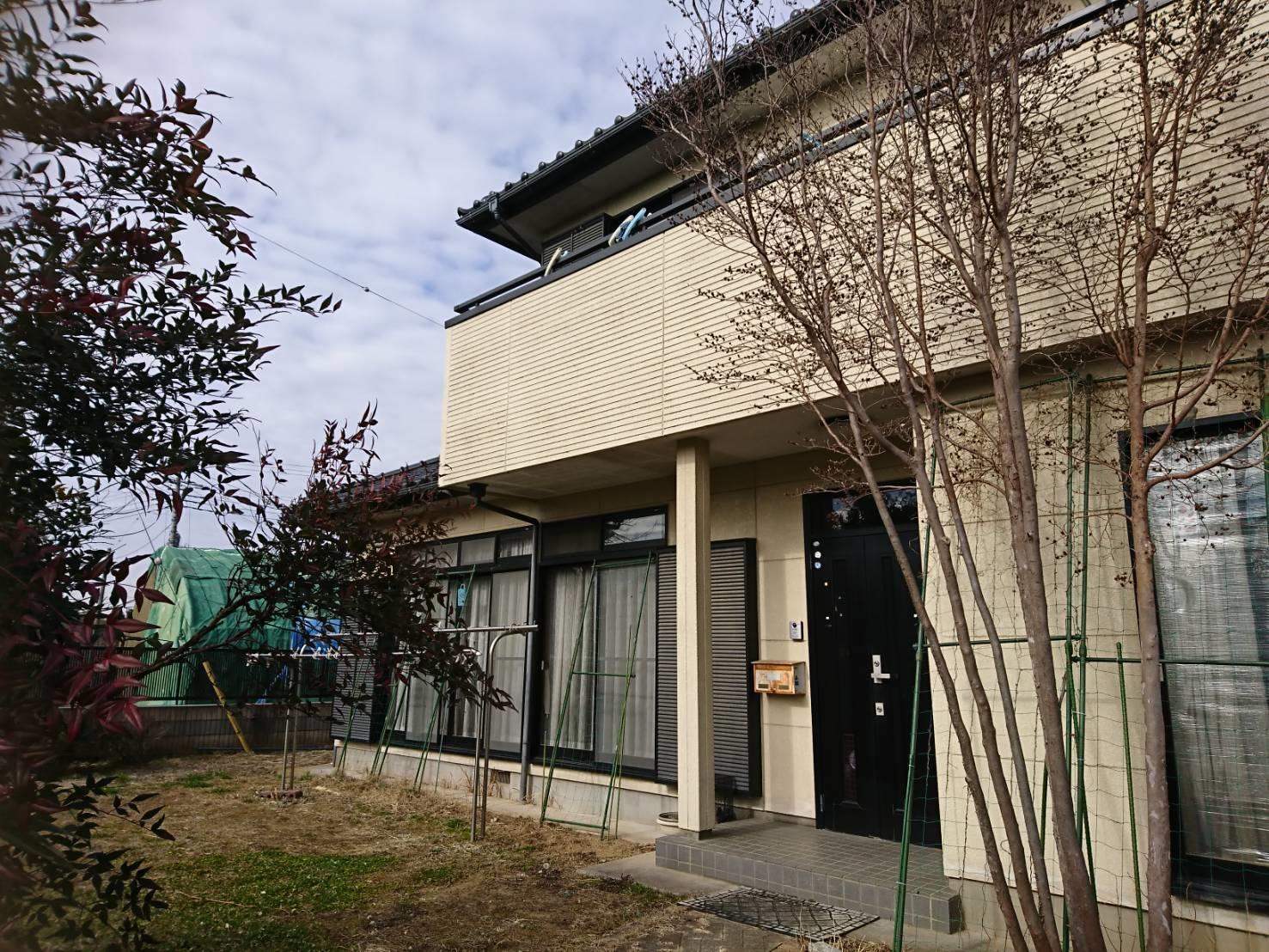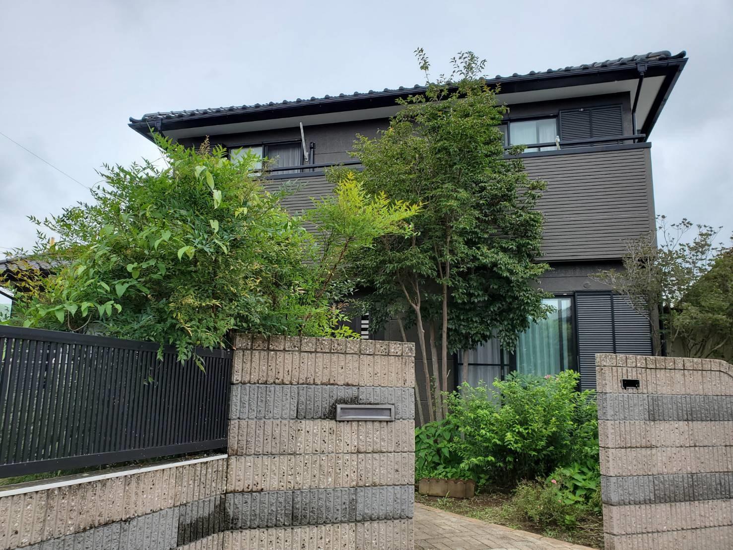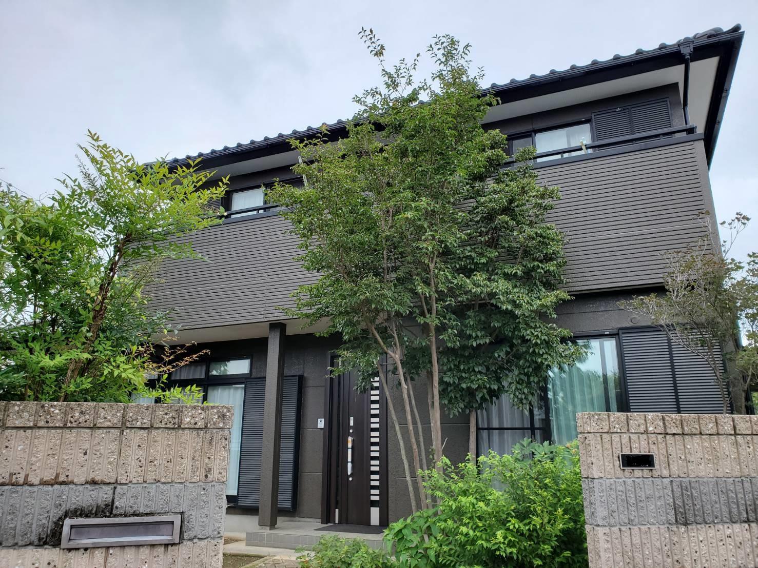 長い年月、紫外線の影響を受け色あせた外壁は、塗装をするなどリフォームする事で新築のようによみがえります。 こちらのお宅は、オフホワイトからダークブラウウンに色を変え塗装をしました。シックで重厚感のある外観に仕上がりました。