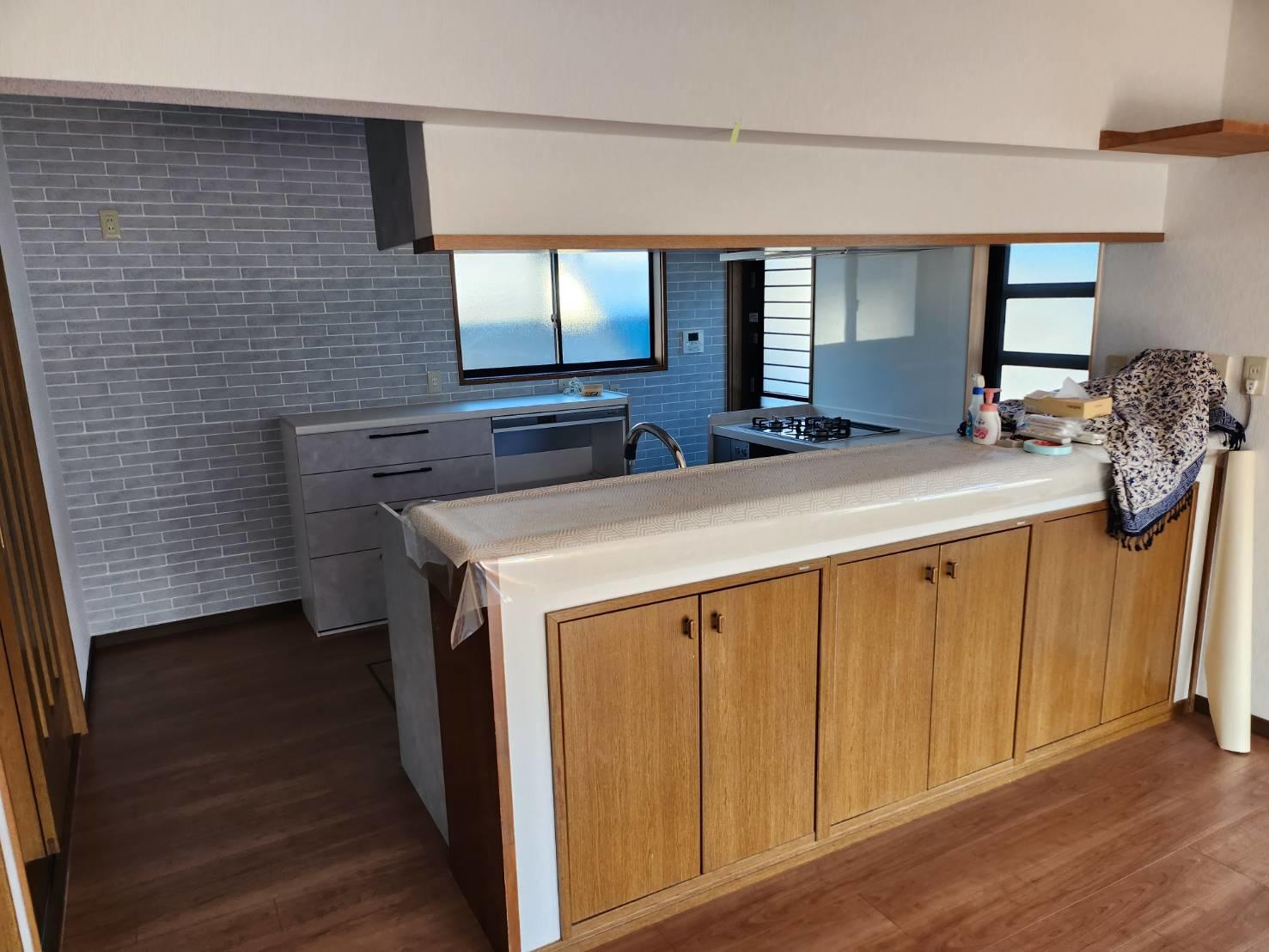 新しいキッチンで、料理や暮らしを楽しんでいただきたく、お施主様とお打合せを重ねました。 クロス選びにもこだわり、施工前に比べ美しくさわやかな印象になりました。 ご家族での団らんやお友達をお招きしてのおもてなしを楽しんでいただければ幸いでございます。