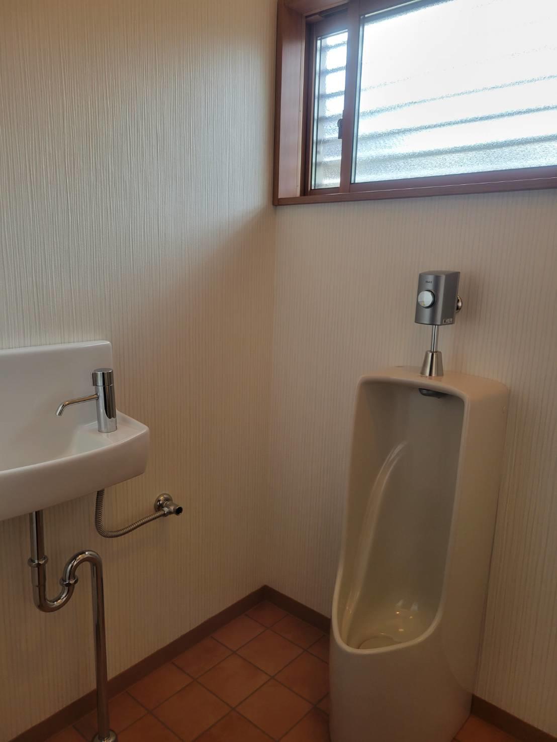シンプルにそぎ落としたデザインに先進機能を搭載。さまざまな空間に調和し、より広い空間を生みだす、サティスSタイプ。 広々とした空間に、男性便器、独立手洗いを併設。収納も再利用し、テラコッタ柄のクッションフロアにシンプルな壁紙でご家族の快適空間がさわやかによみがえりました。