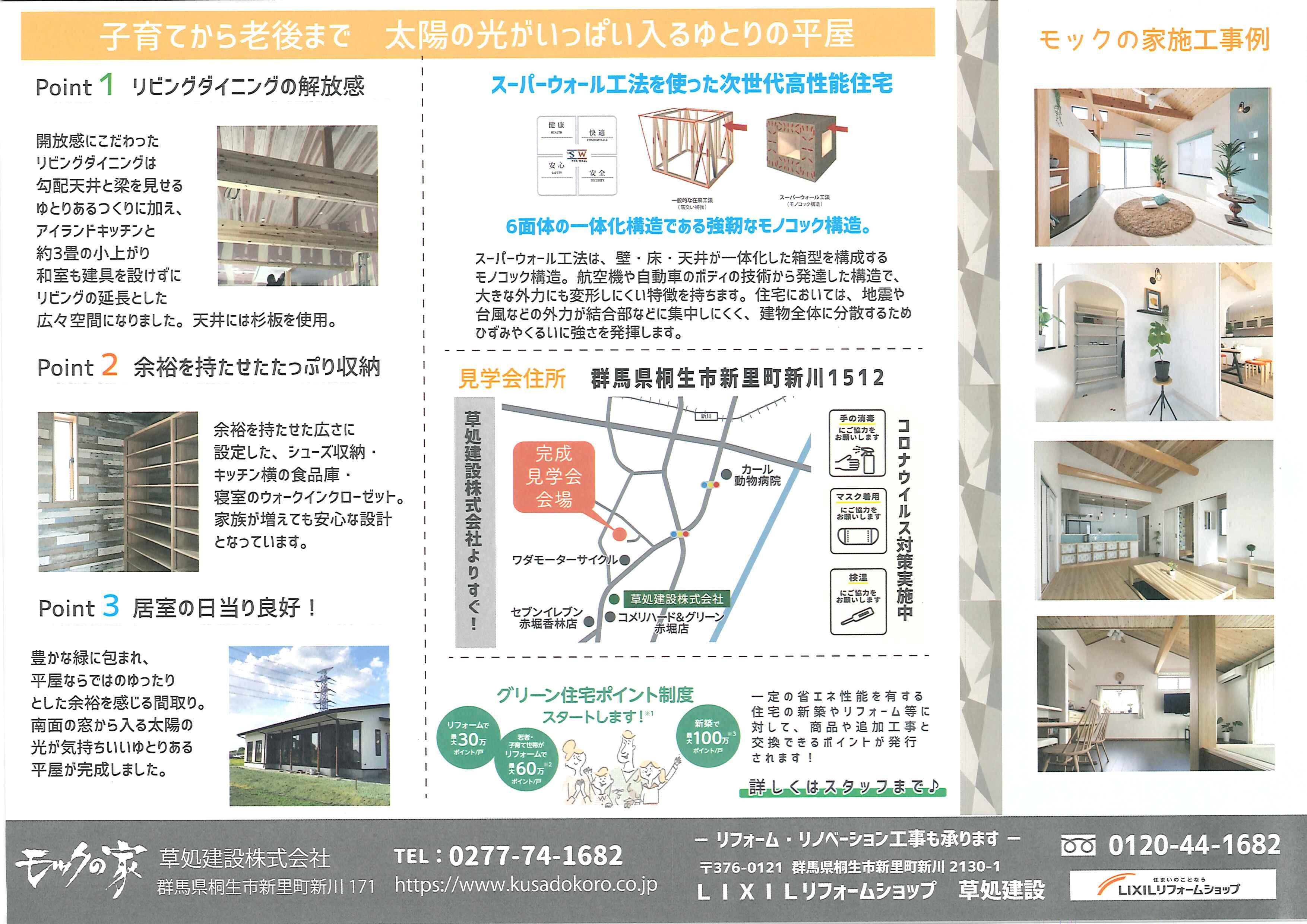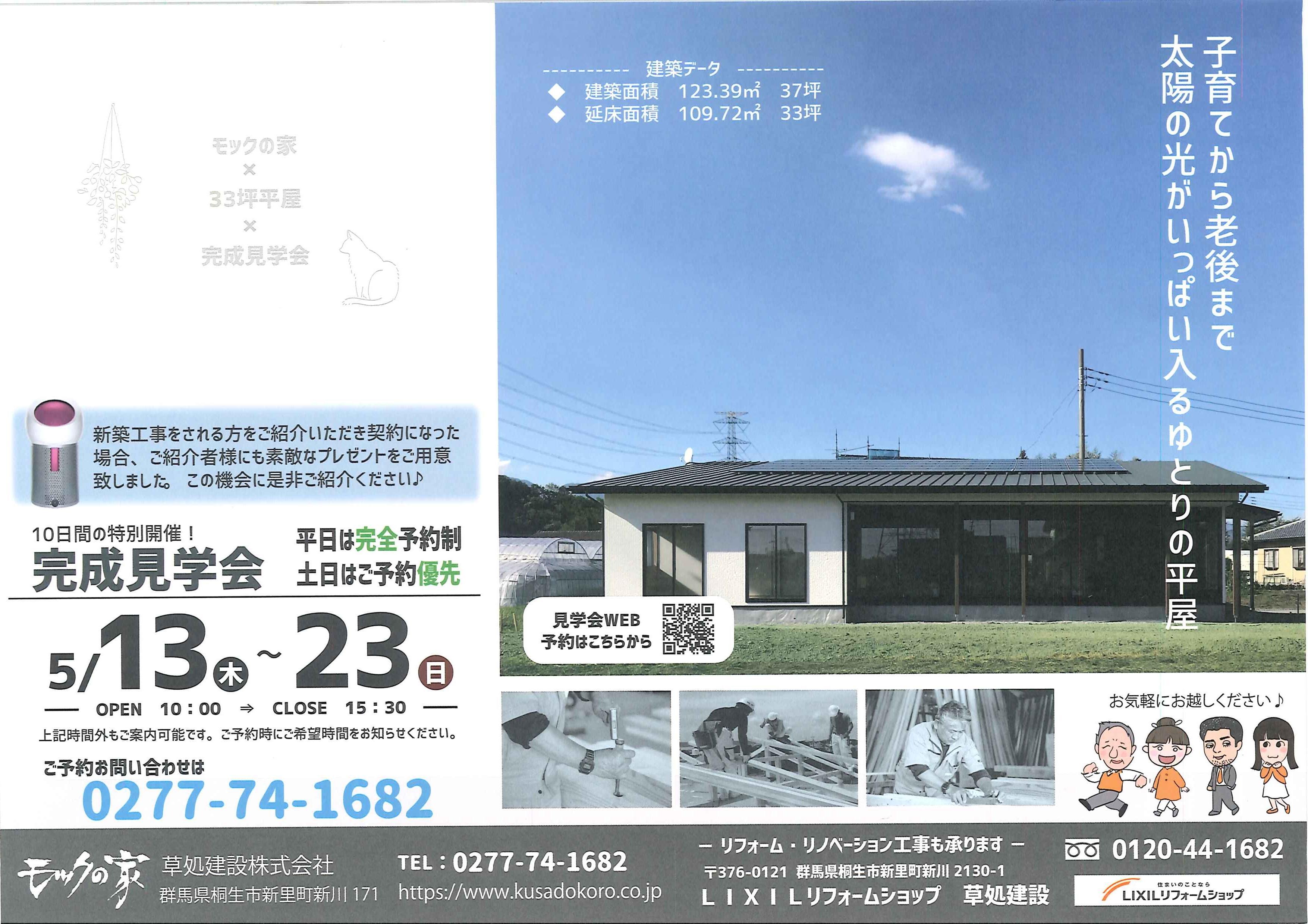 5/13(木)~5/23(日)に、完成見学会を行います。平日は完全予約制、土日は予約優先となっております。