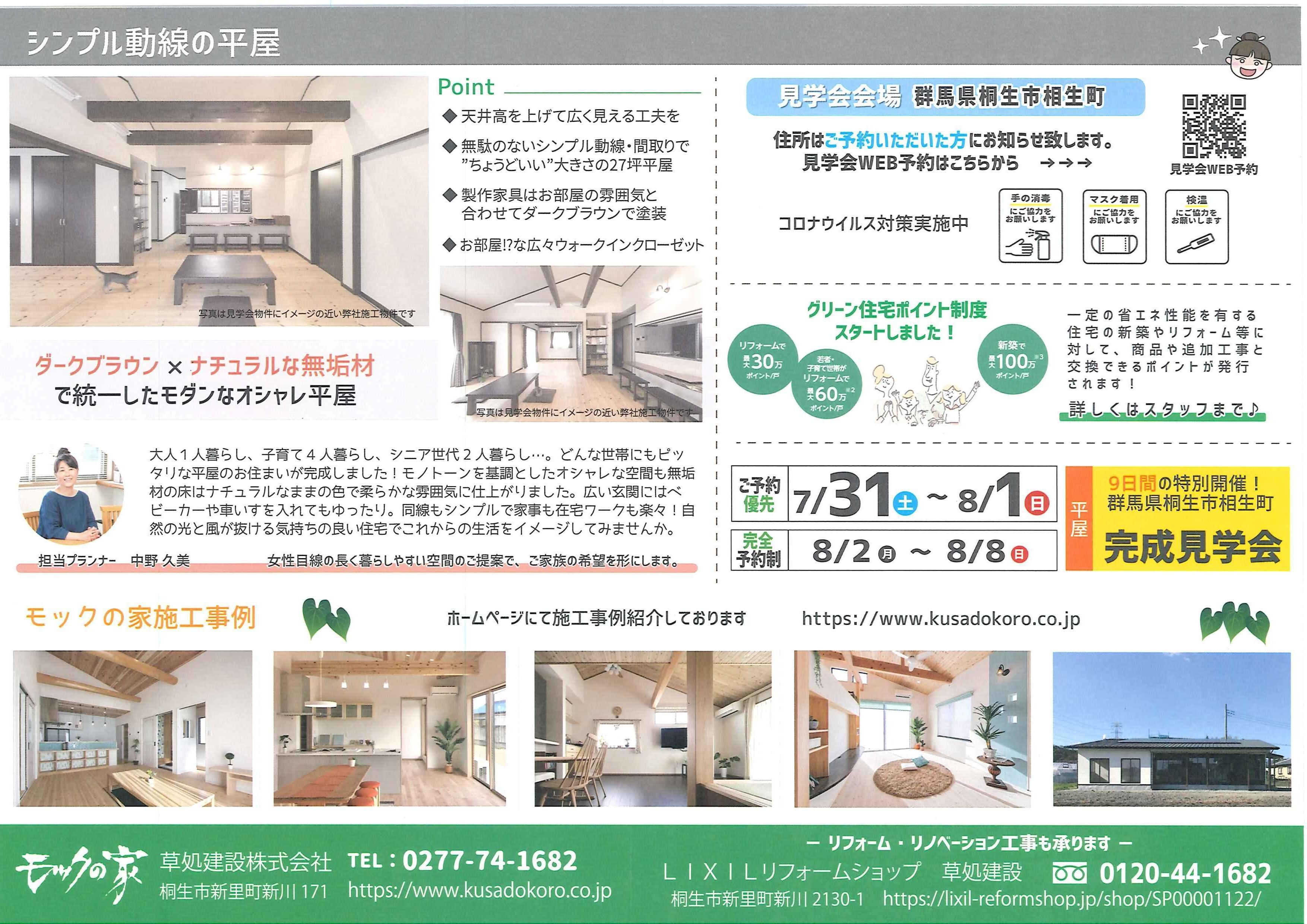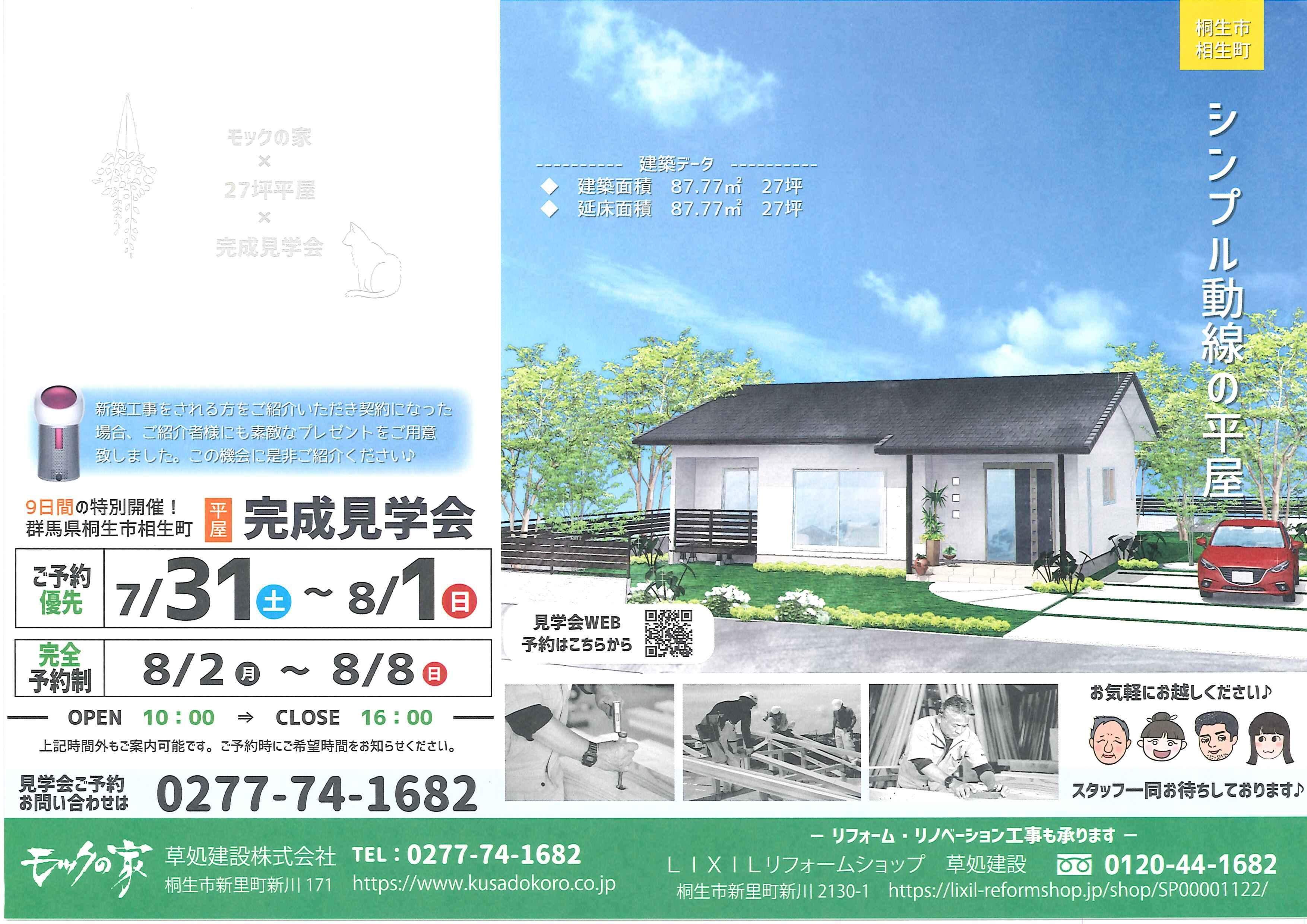 7/31㈯~8/8㈰、桐生市相生町で完成見学を行います。