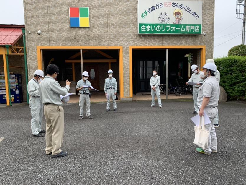 リフォーム班は外壁屋根塗装現場2棟のパトロールです。シール工事状況、下塗り状況、養生の状況などチェックします。高圧洗浄後の清掃状況などもチェックしました。