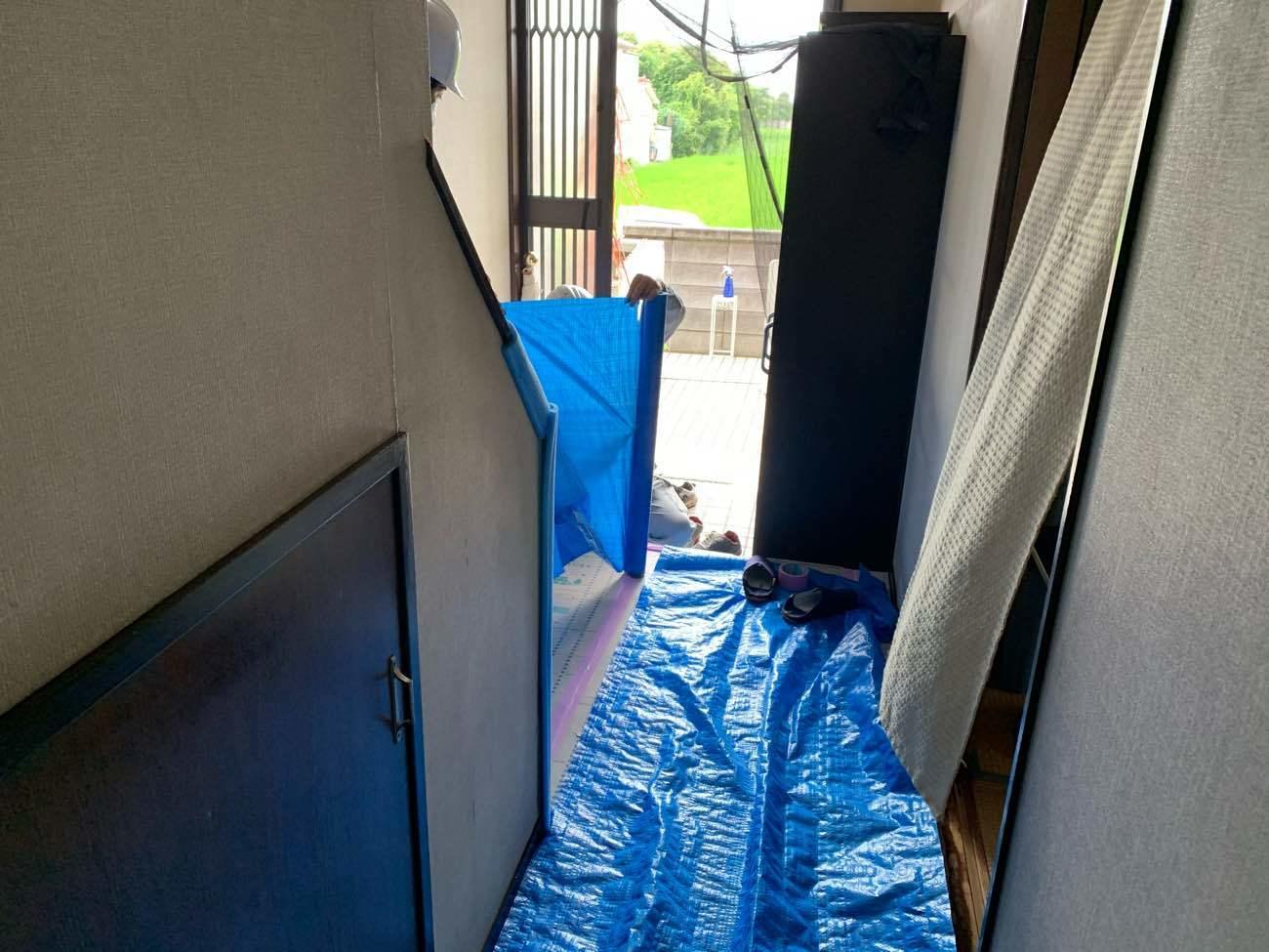 まずは既存のタイルのお風呂の解体から入ります。お客様の大切な家を傷つけないように養生を行い作業にはります。