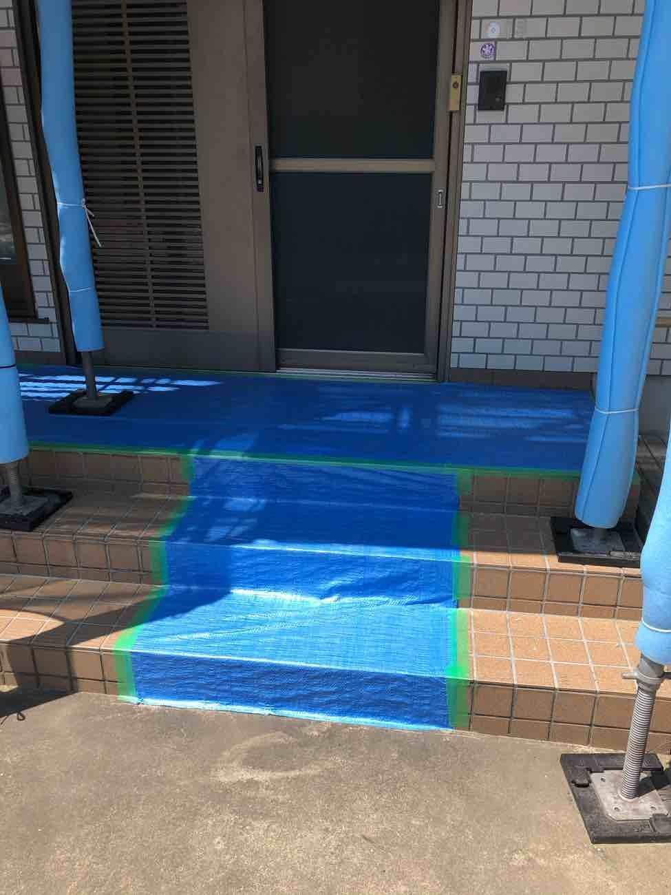 この後3日から4日養生期間をおいて工事を再開します。玄関まわりの養生も完了しました。