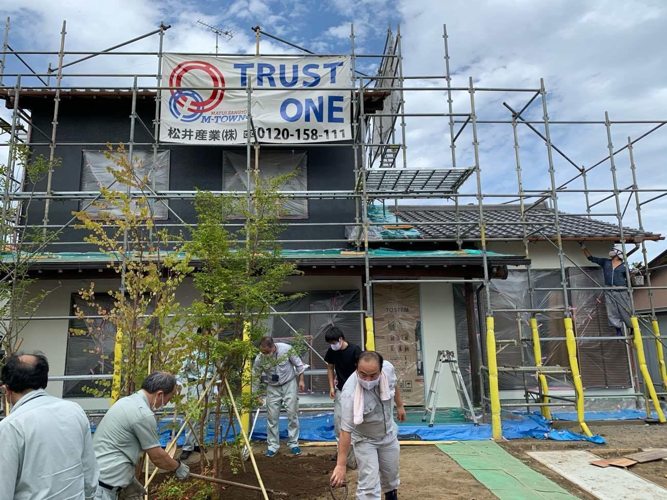 埼玉県三郷市M様邸リノベーション工事は外壁塗装中です。今回は植栽を設置しました。
