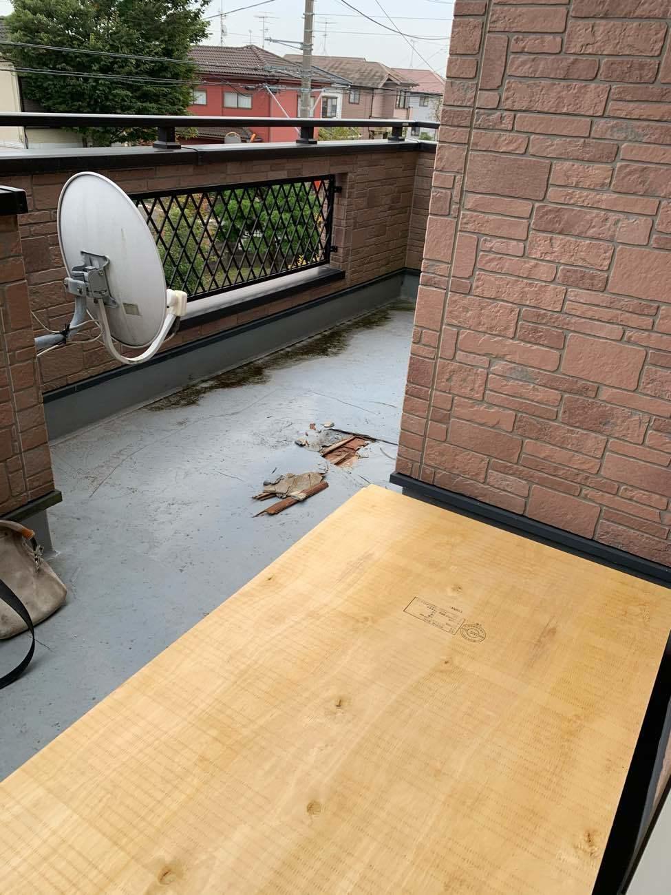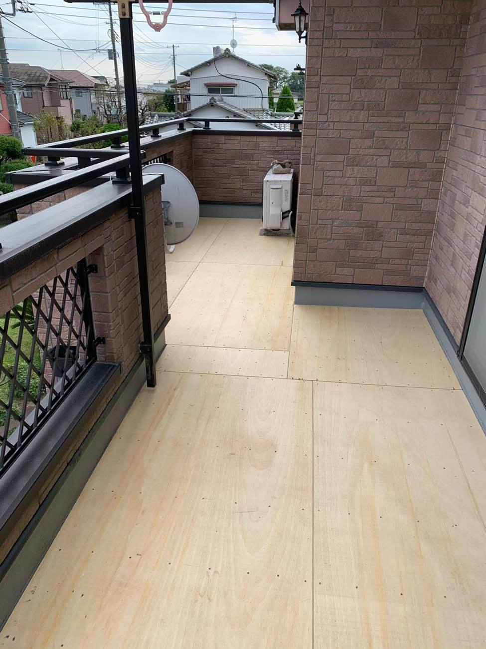 腐食部分を補修しベランダにべニアを貼りこれから防水工事をします。