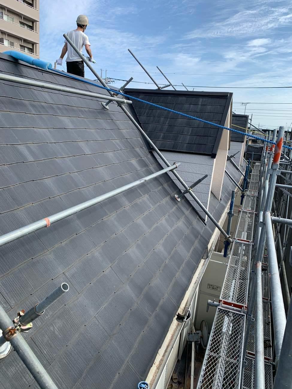 高圧洗浄が完了し、オートイクシードによるシール工事です。引き続き安全第一で工事を行います。