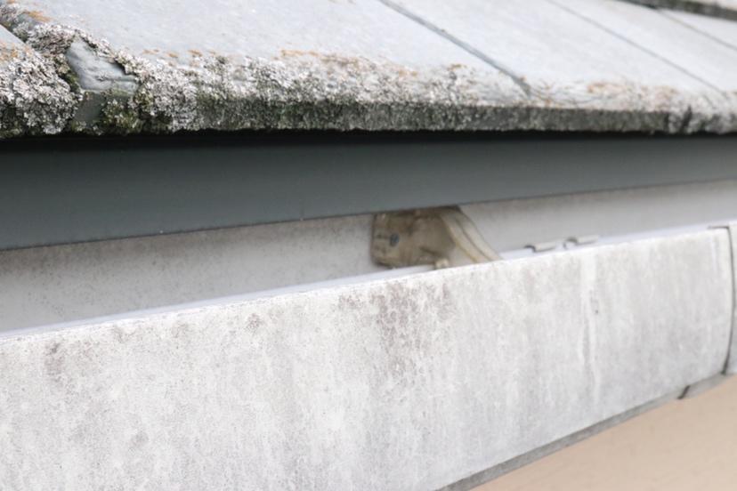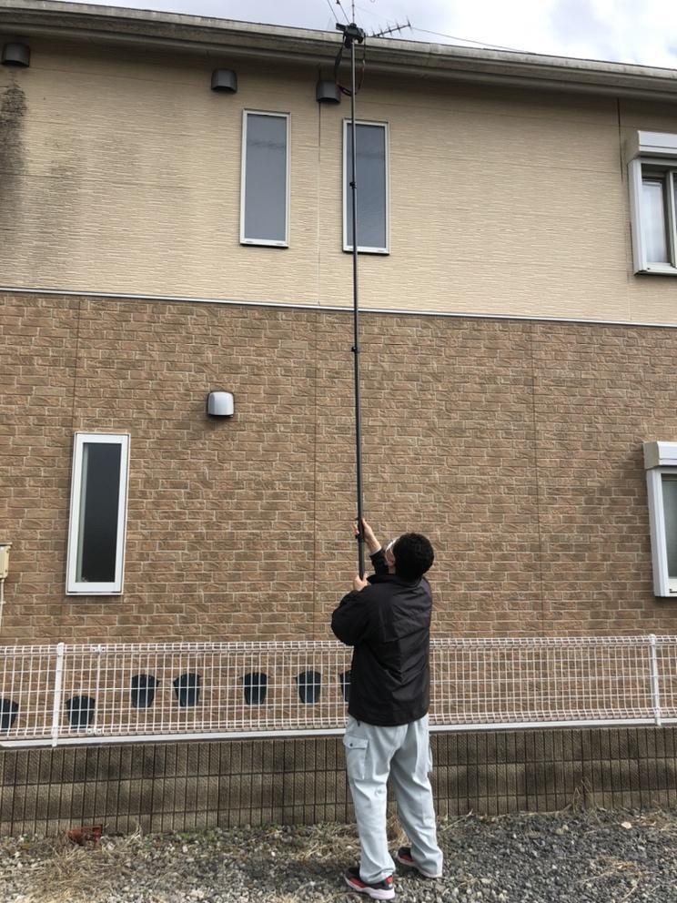 高所撮影用の機材を使い屋根や雨樋を点検しています。