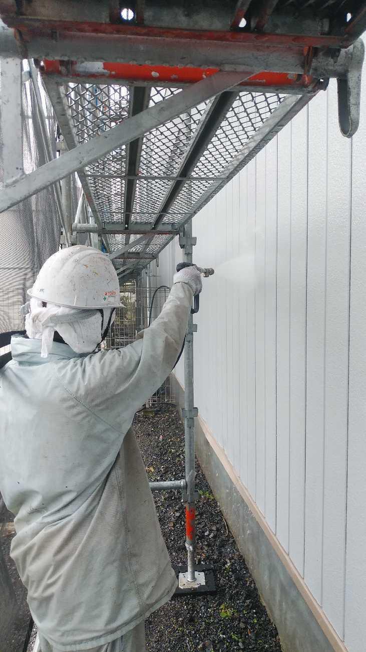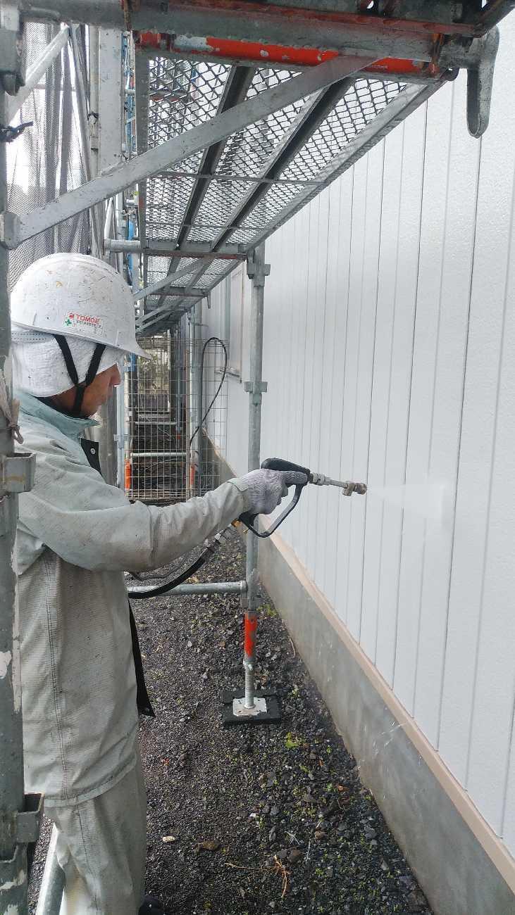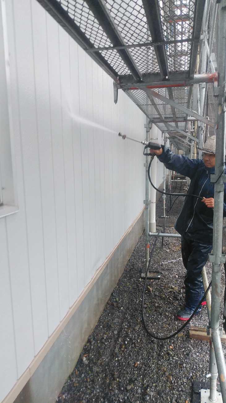 高圧洗浄をしっかり行わないと塗料が剥がれる原因となるのでしっかりと行います。