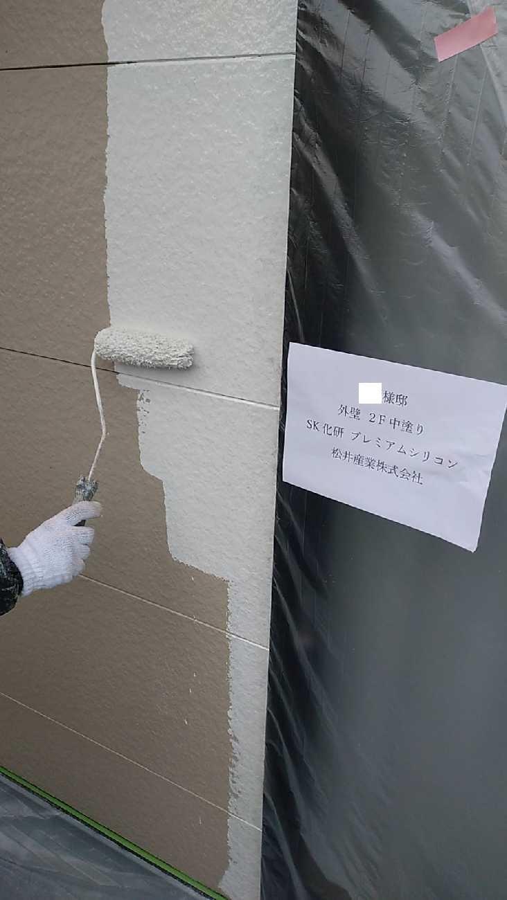その後に下塗り、中塗りまで行いました。塗料はプレミアムシリコンを使用しています。