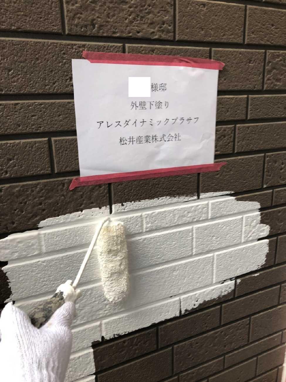 【埼玉県北葛飾郡松伏町】M様邸外壁塗装工事は下塗りです。アレスダイナミックプラサフ