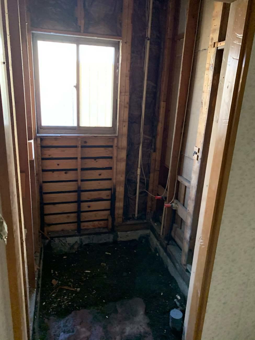 玄関となる部屋、風呂場、キッチンを解体しました。解体後に現地を見ておさまりを確認します。