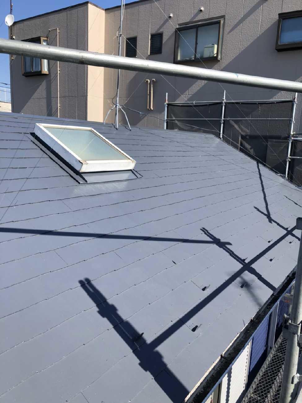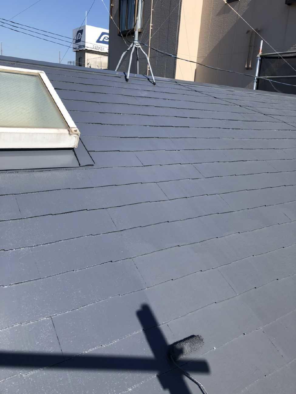 追加でお仕事をいたただいた屋根塗装工事も高圧洗浄後に下塗り、タスペーサーを入れた後に中塗り、上塗りを行いました。ヤネフレッシュシリコンを使用しています。