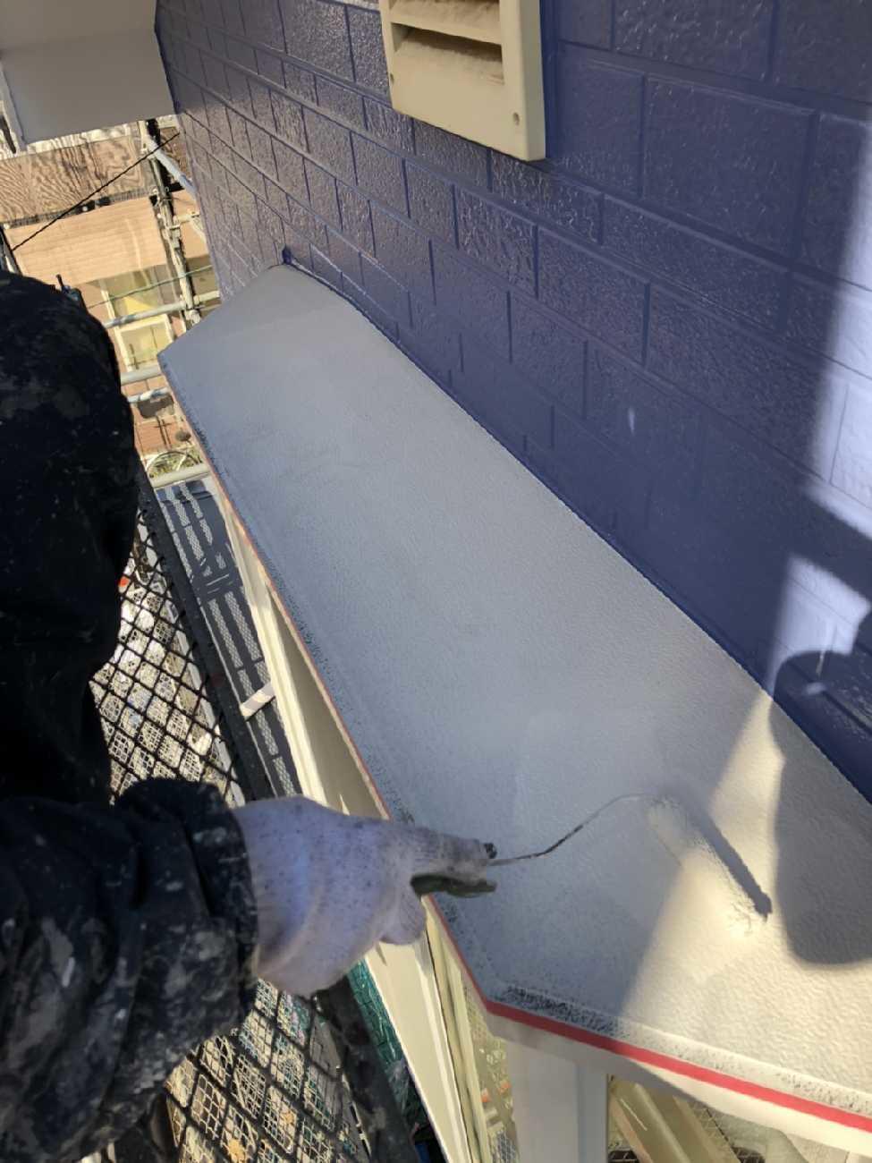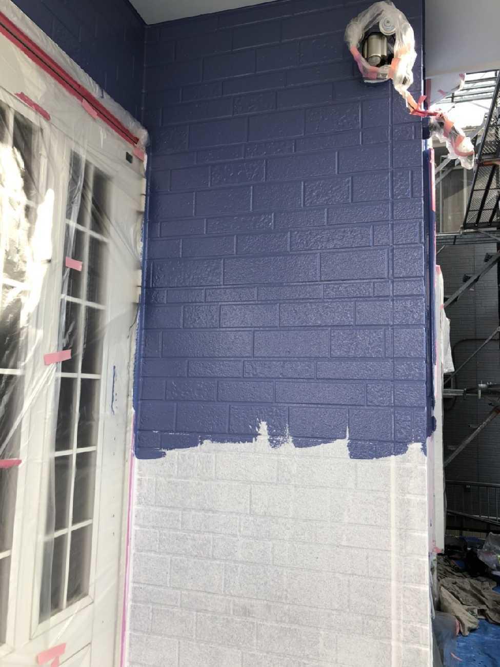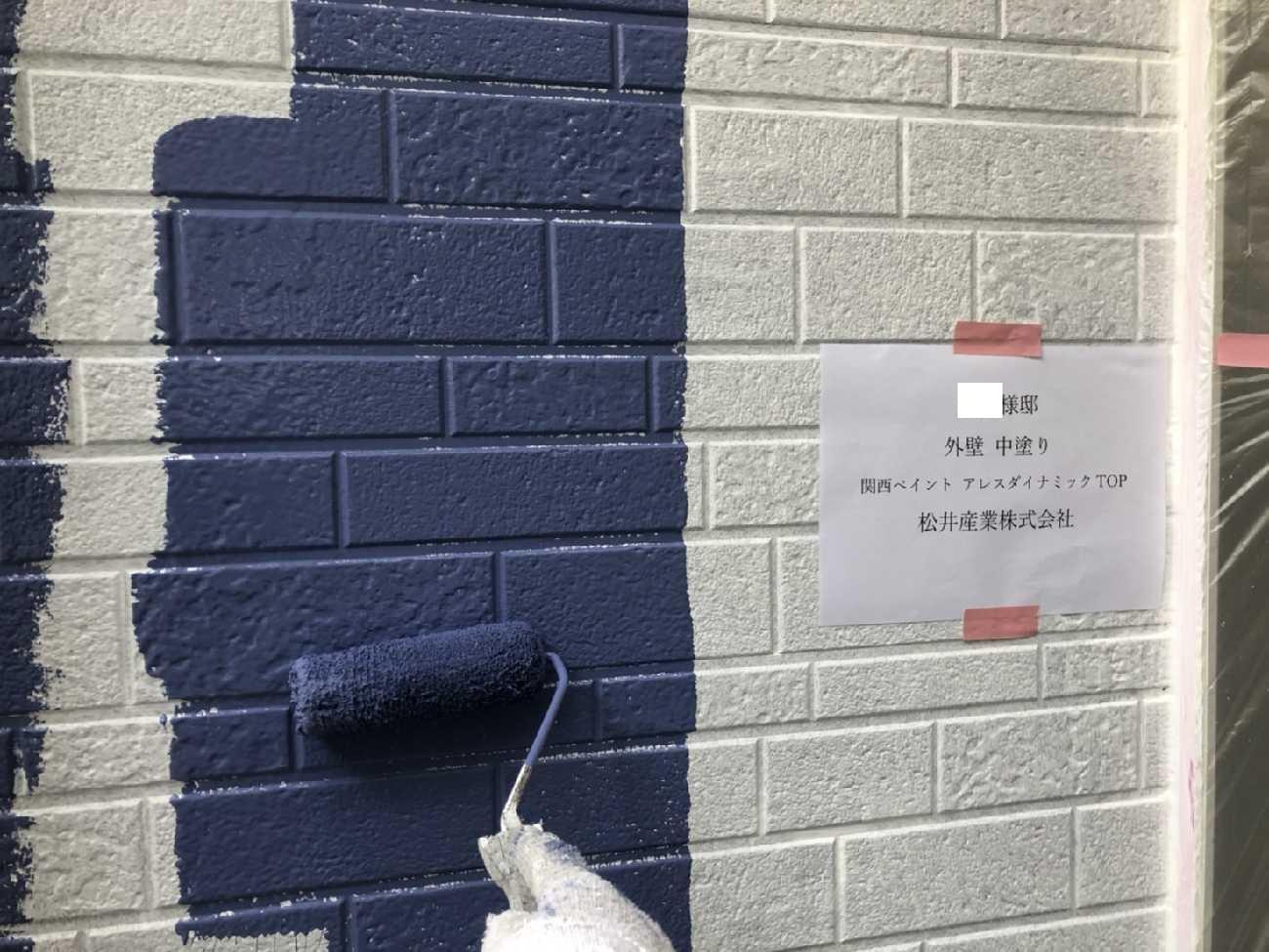 一覧へ戻る埼玉県北葛飾郡松伏町M様邸外壁屋根塗装工事は外壁中塗り、上塗り中です。関西ペイントのアレスダイナキックTOPを使っています。