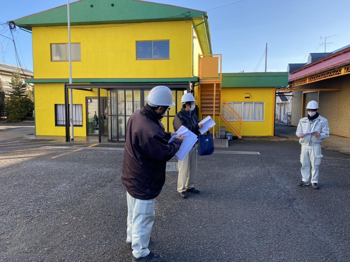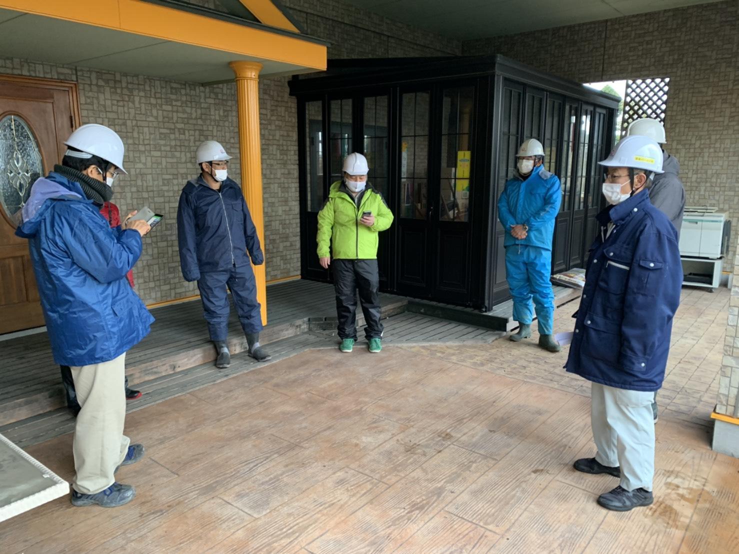 出発時の様子です。ベテランの目を交えてのパトロールは緊張感があり構造的なアドバイスや長年の経験による知恵は施工品質の向上に大きく役立っています。フルリフォーム現場は構造的な部分が出てきますので普段では見えない天井や床下などもチェックさせていただき、耐震リフォームや間取りの変更以外でも古い建物は補強させていただいたりなど頑丈な建物にするための工夫をしています。