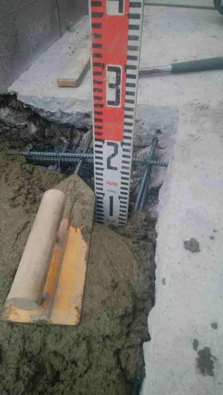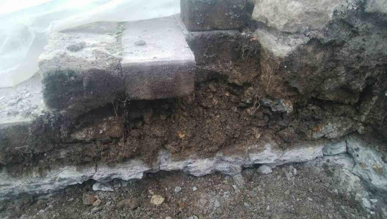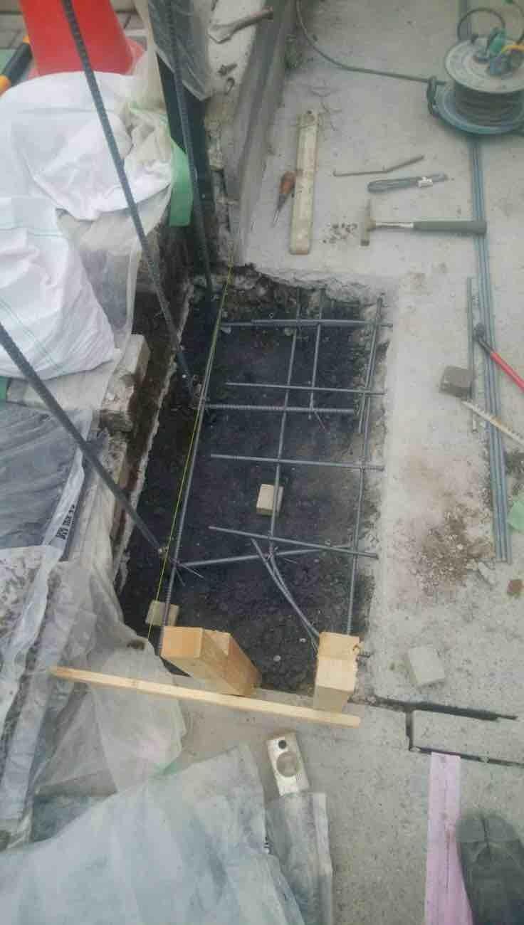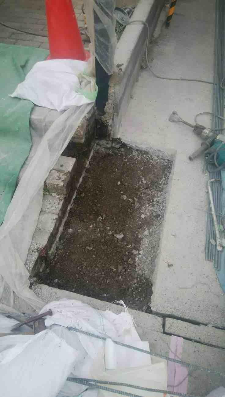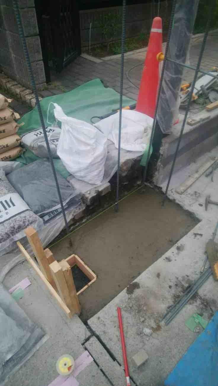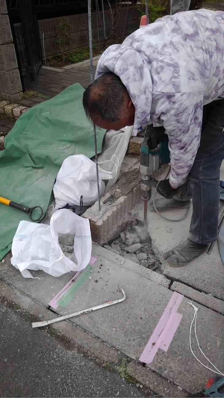 ブロックが傾いているので一旦ブロックを取って新た鉄筋を入れてベースを広く取るのでより頑丈になります。
