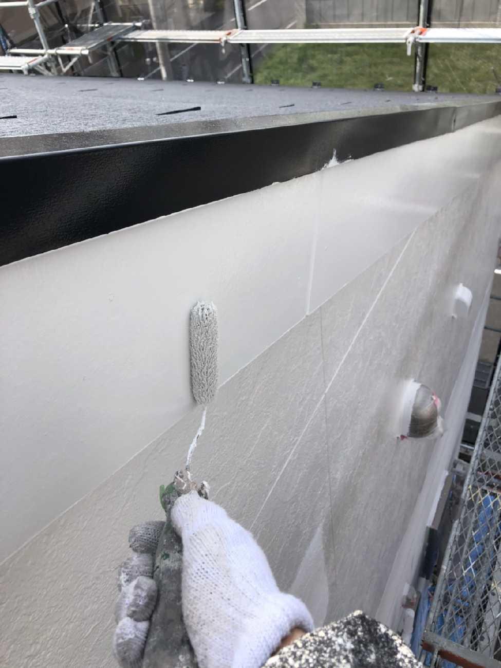 埼玉県三郷市N様貸家外壁屋根塗装工事は外壁中塗りです。アレスダイナミックトップ